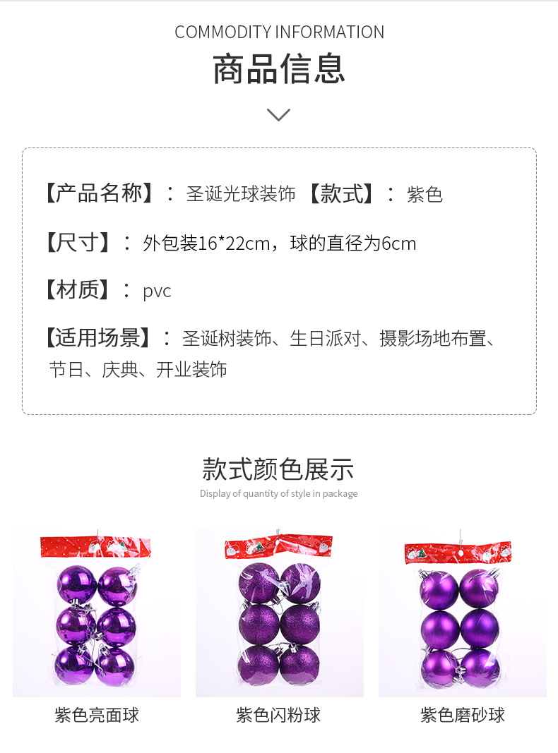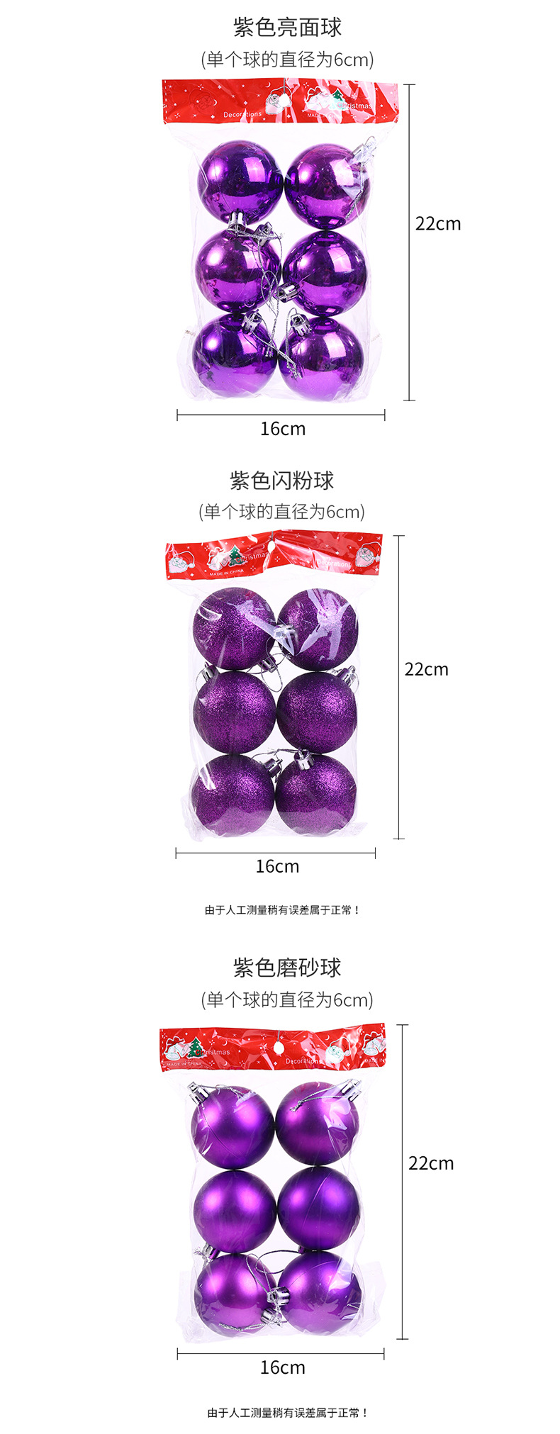 | Color | Púrpura brillante bola (6 pack),Bola esmerilada púrpura (6 pack),Bola de purpurina (paquete de 6) |