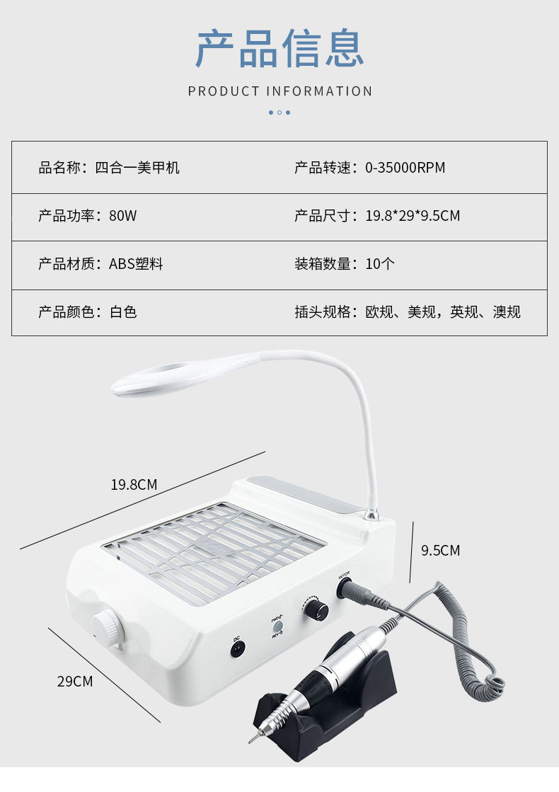 | Especificación | Enchufe blanco-EE. UU. (aplicable a China, Estados Unidos, Japón y otros países),Enchufe blanco-europeo (aplicable a Alemania, Francia, Rusia, Corea del Sur y otros países),Enchufe estándar británico blanco (para Reino Unido, Singapur, Malasia, India y otros países),Blanco-enchufe australiano (aplicable a países como Australia y Nueva Zelanda) |