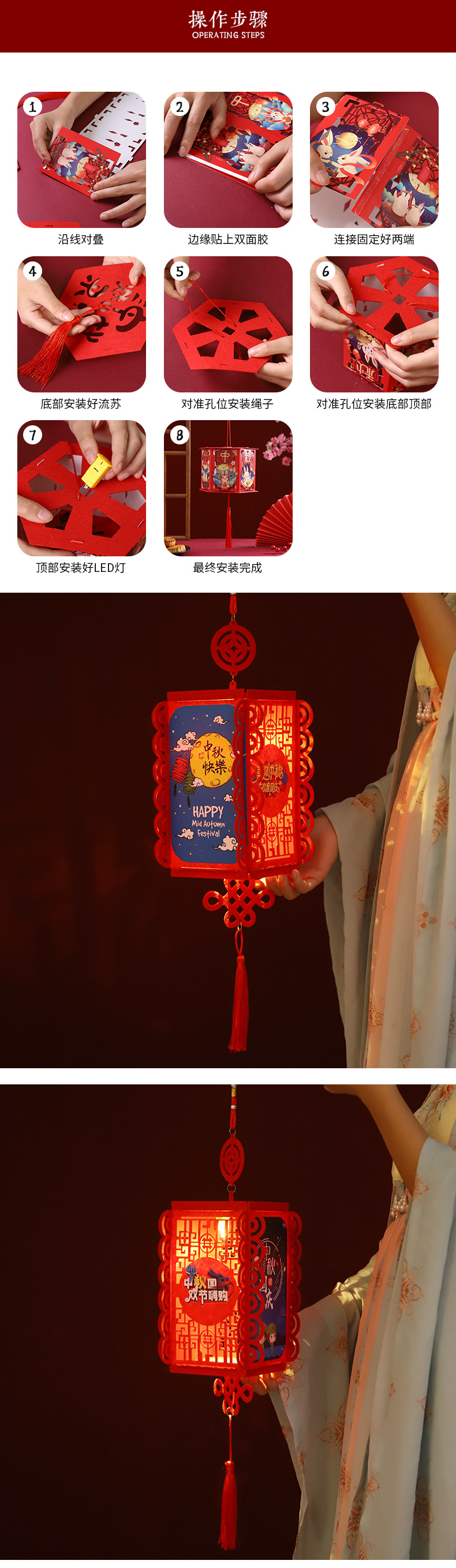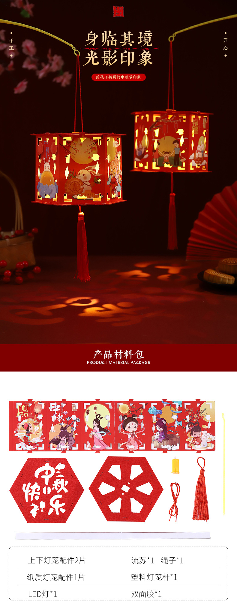 | Colores | Linterna de seis caras-01 (Festival del Medio Otoño con luna llena) [31g],Linterna de seis caras-02 (Chang'e vuela a la luna) [31g],Linterna de seis caras-03 (Festival de mediados de otoño de luna llena) [31g],Linterna de seis caras-04 (Reunión de mediados de otoño) [31g],Linterna de seis caras-05 (conejo de jade) [31g],Linterna de seis caras-06 (Feliz Festival del Medio Otoño) [31g],Palace Lantern-01 [65g],Palace Lantern-02 【 65 g/】 |