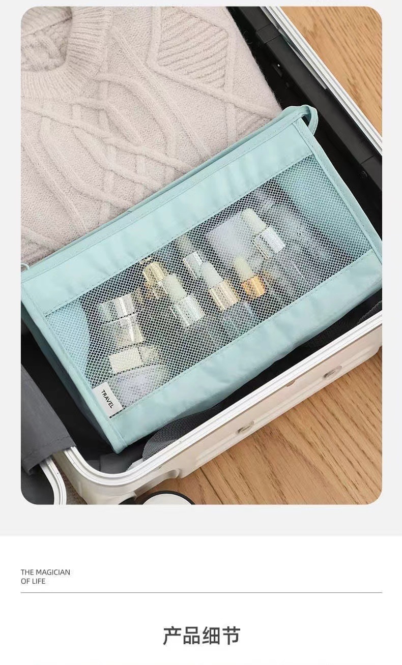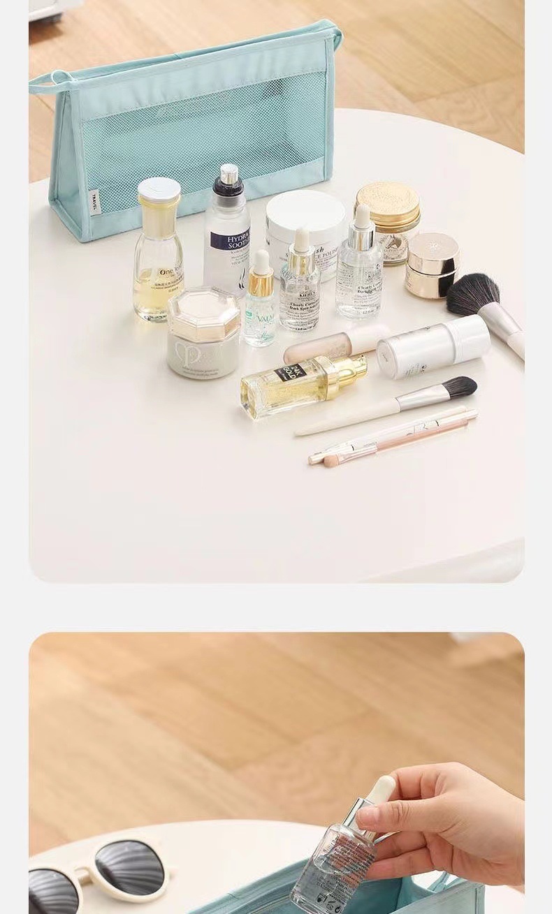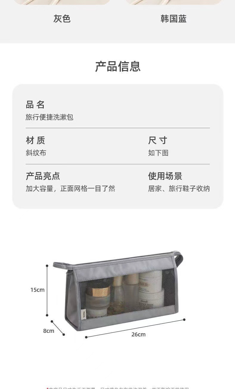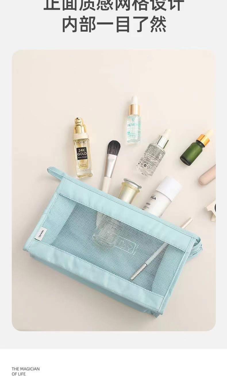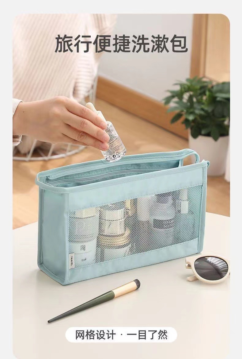 Bolsa de almacenamiento de cosméticos portátil simple de gran capacidad bolsa de lavado portátil viaje de negocios bolsa de almacenamiento de hilo de red