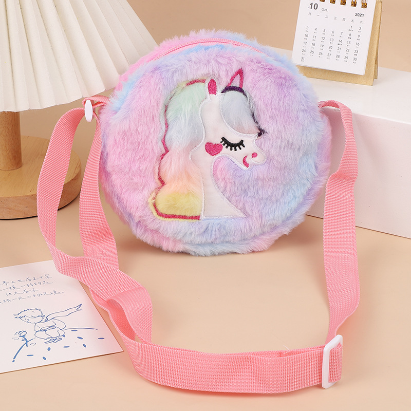 Estilo coreano de dibujos animados lindo de los niños de La felpa pequeña bolsa de hombro chica estudiante de hombro bolsa de mensajero bebé pony bolsa