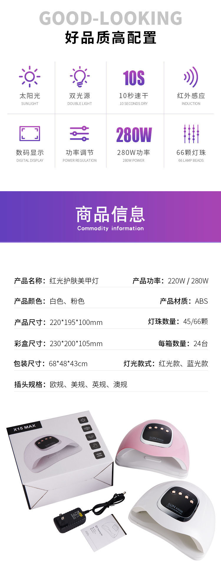 | Especificaciones | 66 LED Luz Roja Blanca - Enchufe US (Apto para China, EE. UU., Japón y otros países),66 LED Luz Roja Blanca - Enchufe Europeo (Apto para Alemania, Francia, Rusia, Corea del Sur y otros países),66 LED Luz Roja Blanca - Enchufe UK (Apto para Reino Unido, Singapur, Malasia, India y otros países),66 luces rojas y blancas - Enchufe australiano (aplicable a Australia, Nueva Zelanda y otros países) |