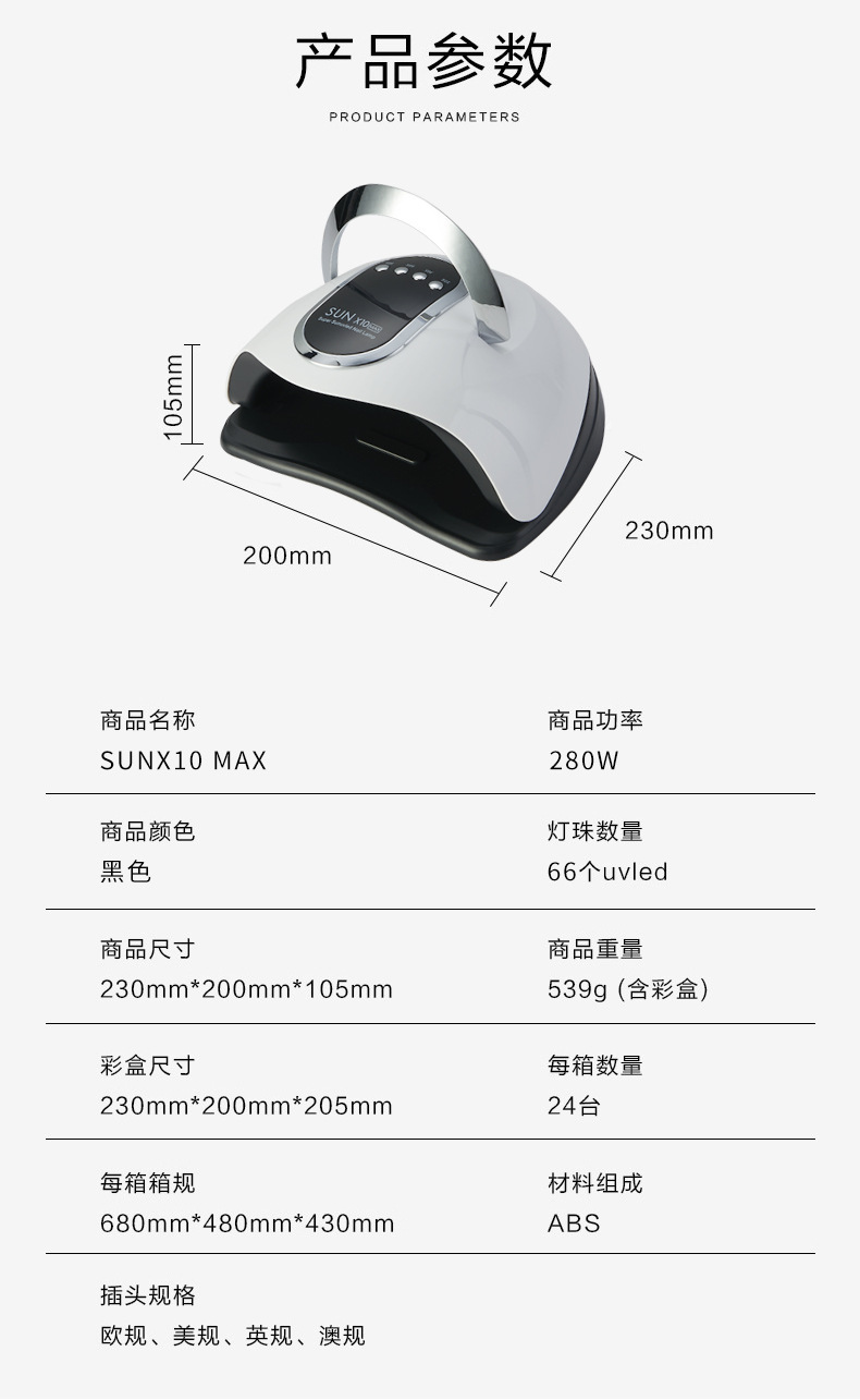 | Especificaciones | 66 perlas de lámpara Sunx6max - Enchufe US (apto para China, Estados Unidos, Japón y otros países),66 perlas de lámpara sunx6max-enchufe europeo (aplicable a Alemania, Francia, Rusia, Corea del Sur y otros países),66 perlas de lámpara Sunx6max - Enchufe UK (apto para Reino Unido, Singapur, Malasia, India y otros países),66 perlas de lámpara Sunx6max - Enchufe australiano (apto para Australia, Nueva Zelanda y otros países),66 perlas de lámpara Sunx10max - Enchufe US (apto para China, Estados Unidos, Japón y otros países),66 perlas de lámpara Sunx10max - Enchufe europeo (apto para Alemania, Francia, Rusia, Corea del Sur y otros países),66 perlas de lámpara Sunx10max - Enchufe UK (apto para Reino Unido, Singapur, Malasia, India y otros países),66 perlas de lámpara Sunx10max - Enchufe australiano (apto para Australia, Nueva Zelanda y otros países),66 perlas de lámpara Sunx11max - Enchufe US (apto para China, Estados Unidos, Japón y otros países),66 perlas de lámpara Sunx11max - Enchufe europeo (apto para Alemania, Francia, Rusia, Corea del Sur y otros países),66 perlas de lámpara Sunx11max - Enchufe UK (apto para Reino Unido, Singapur, Malasia, India y otros países),66 perlas de lámpara Sunx11max - Enchufe australiano (apto para Australia, Nueva Zelanda y otros países) |