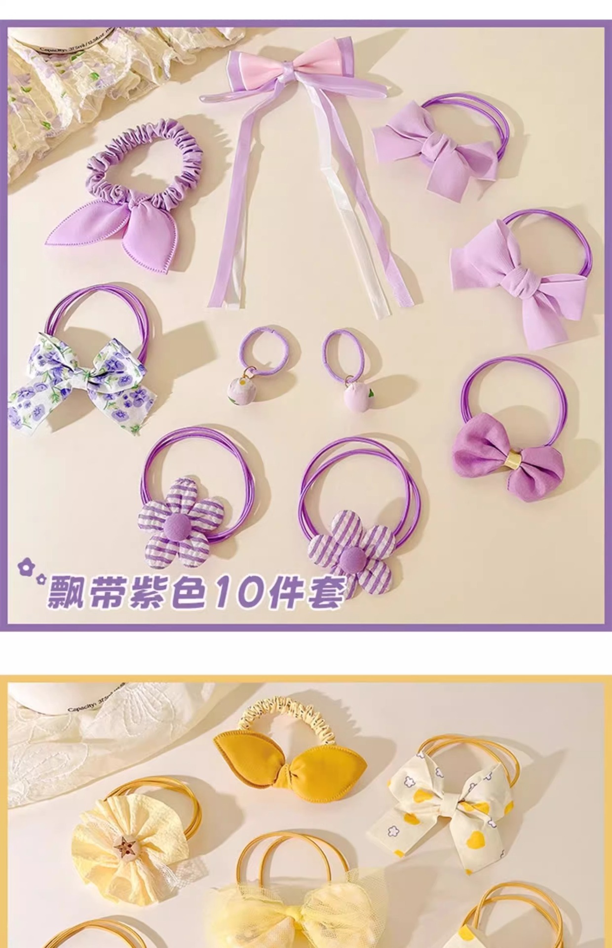 | Color | 8 Juegos de 10 piezas de amarillo, 10 juegos de 10 piezas de oreja Púrpura y 11 juegos de 10 piezas de rosa naranja |