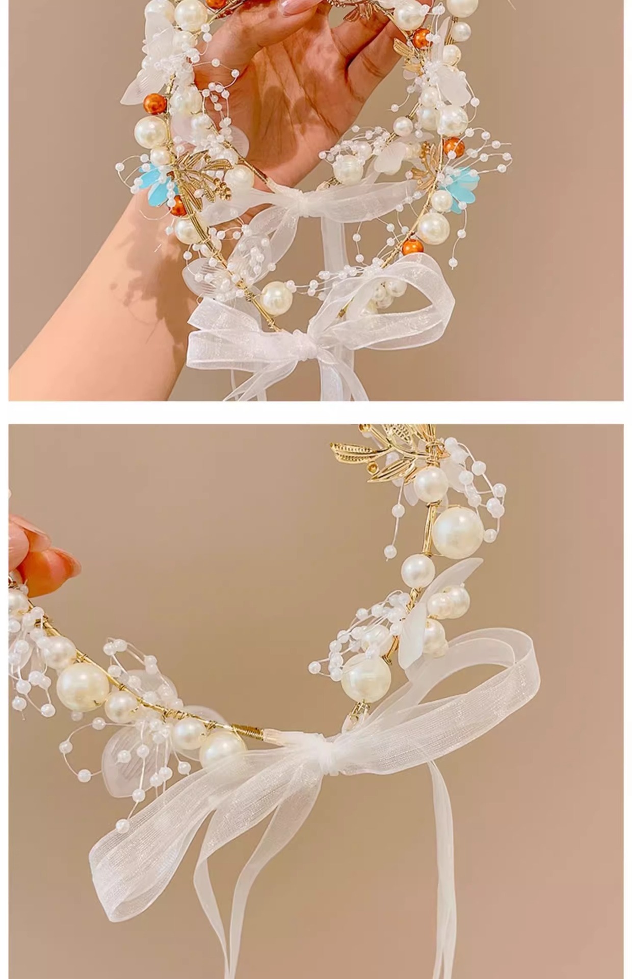 | Color | 1 # blanco perla flor cinta diadema,Diadema de cinta de flor de perla púrpura 2 #,3 # cinta de cuentas azul diadema |