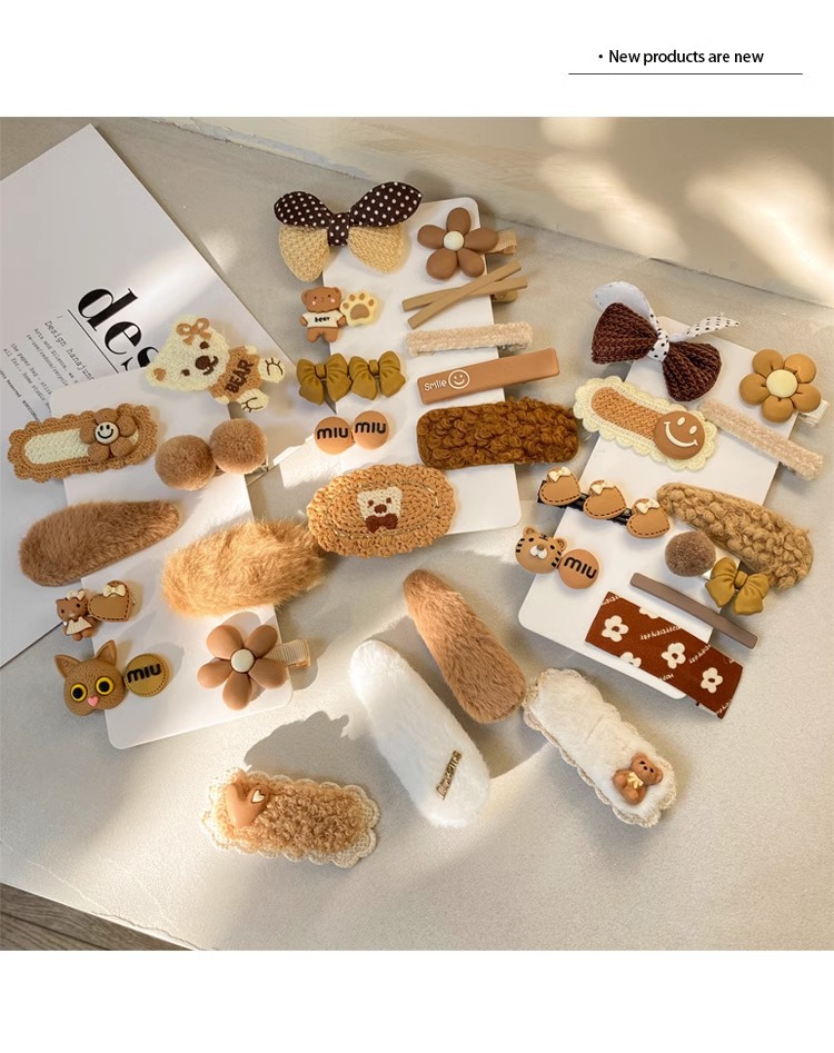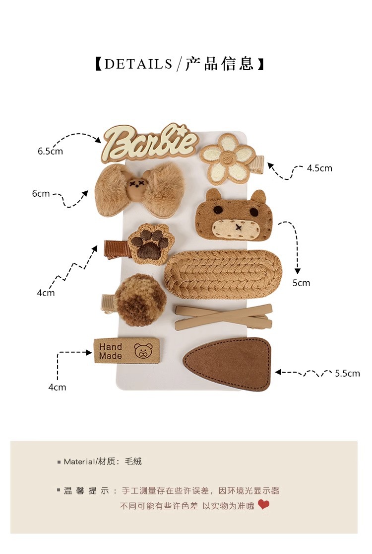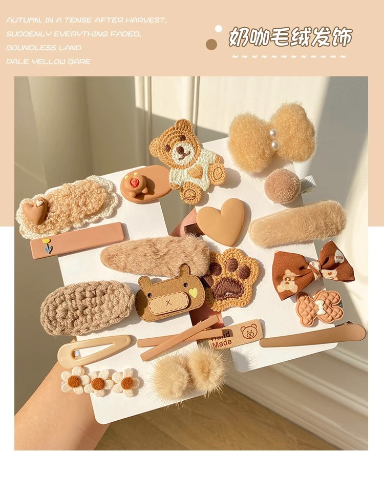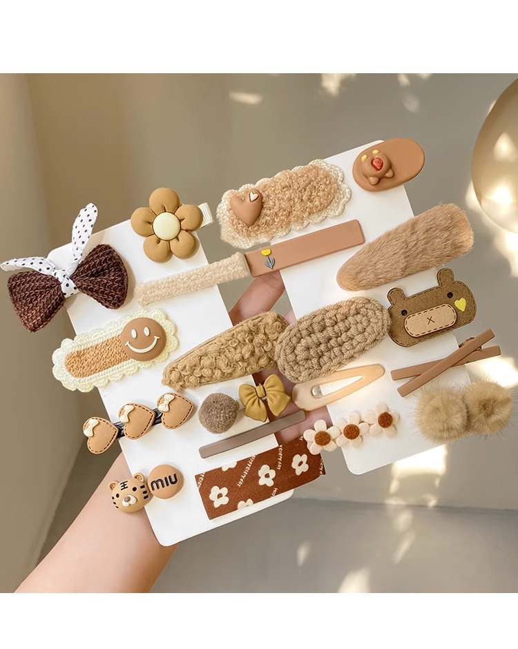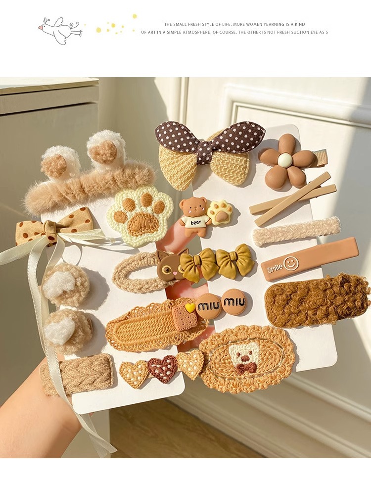 | Colores | 10 piezas beige @,14 horquillas de color púrpura [modelos de primavera] @,14 piezas de rosa [modelos de primavera] @,Serie amarilla 14 piezas [modelos de primavera] @,Marrón 10 piezas @,6 # Conjunto de pajarita de amor blanco @,1 # arco rosa @,2 # Oso verde @,4 # caramelo naranja @,5 # Oso amarillo @,7 # cara sonriente azul @,12 # Juego de oso color café de 10 piezas @,3 # Flores de lunares @,2 #5 trajes de amor @,14 piezas de blanco lechoso @ |