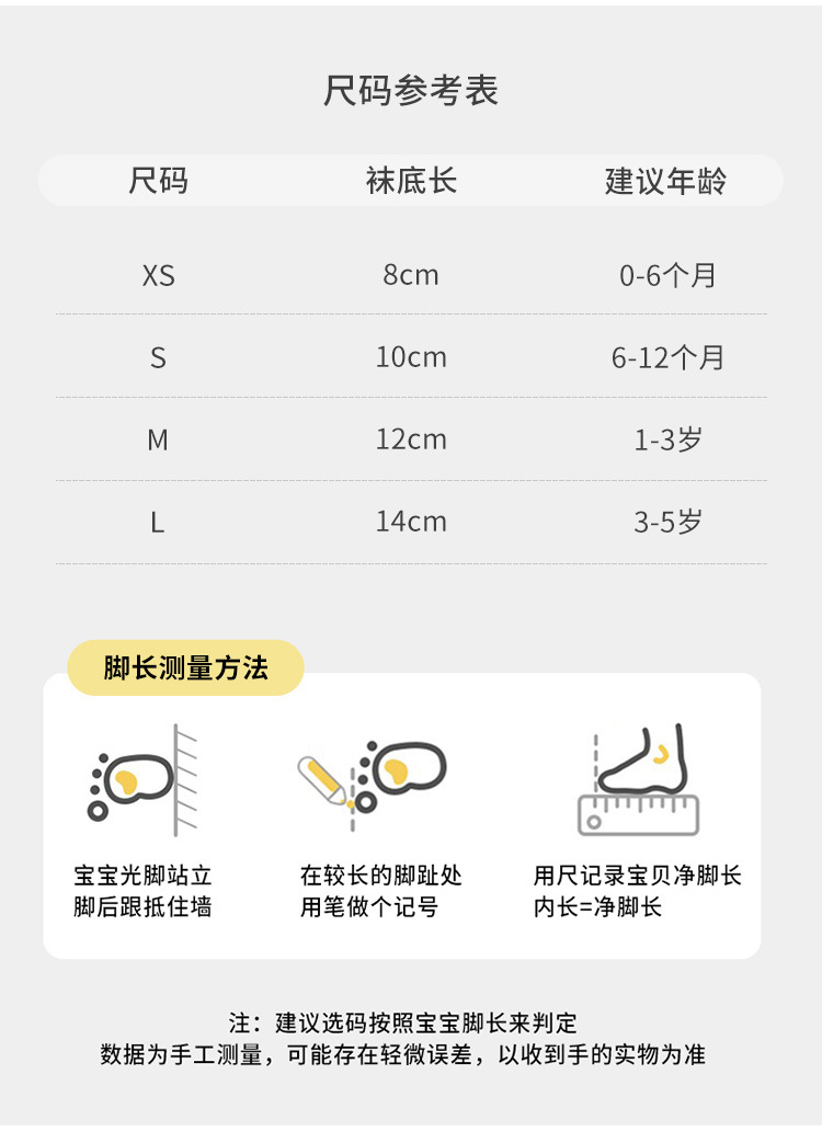 | Tamaño de los calcetines infantiles | Código XS 0 - 6 meses, Código S 6 - 12 meses, Código M 1 - 3 años, Código L 3 - 5 años |
