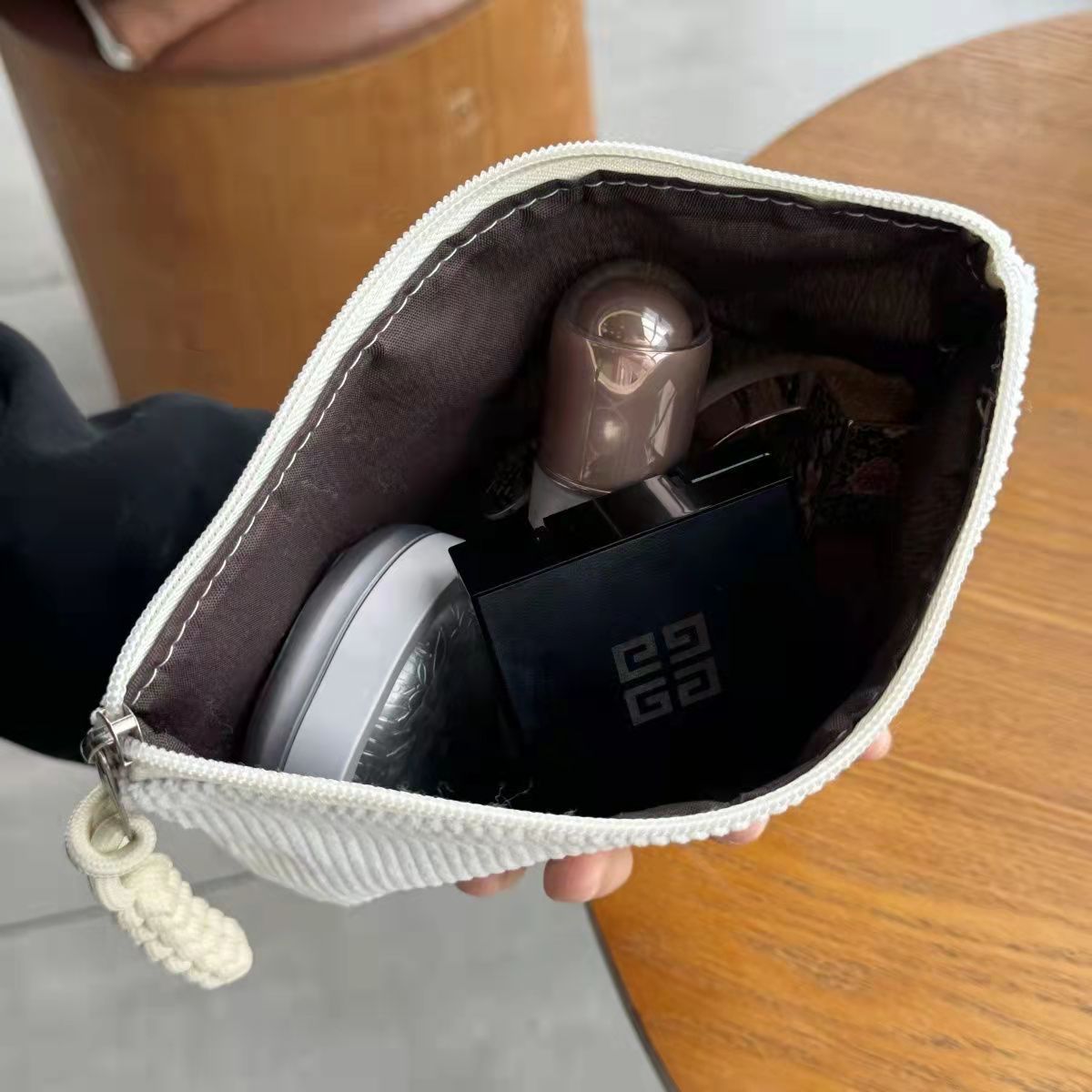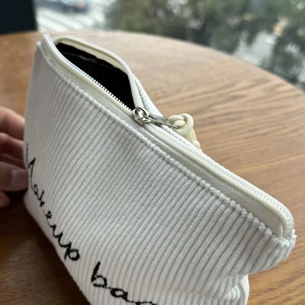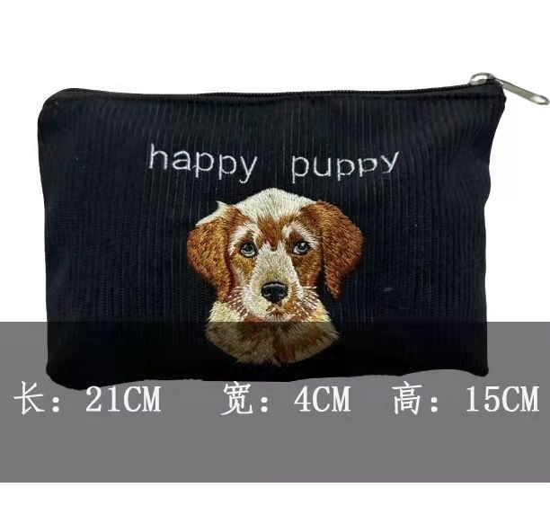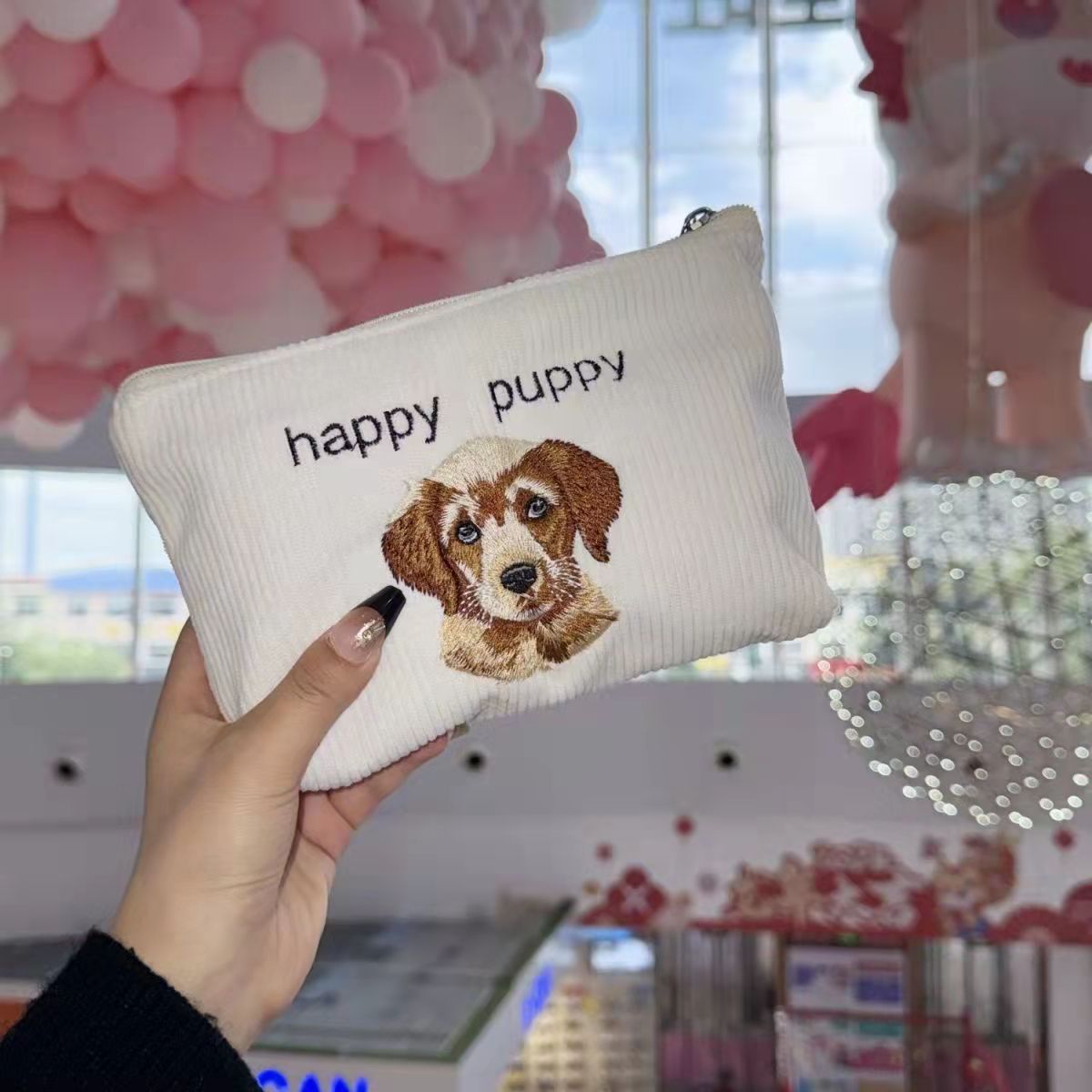 Bolso de maquillaje de cachorro bordado caqui, bolso de maquillaje de cachorro bordado blanco, bolso de maquillaje de cachorro bordado negro, bolso de maquillaje de letra bordada caqui, bolso de maquillaje de letra bordada blanca, bolso de maquillaje de letra bordada negra