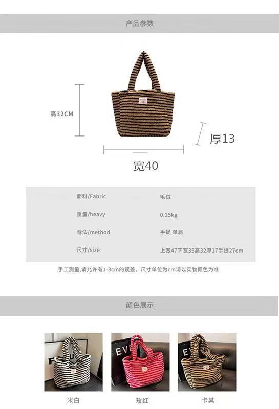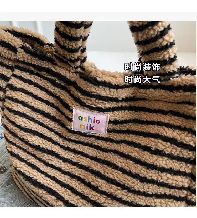 Bolsa portátil de lana de cordero bajo la axila nueva bolsa de invierno a rayas bolsas de peluche suaves de la universidad de gran capacidad bolsas para mujeres
