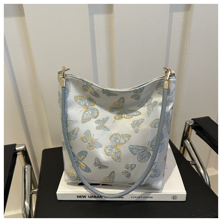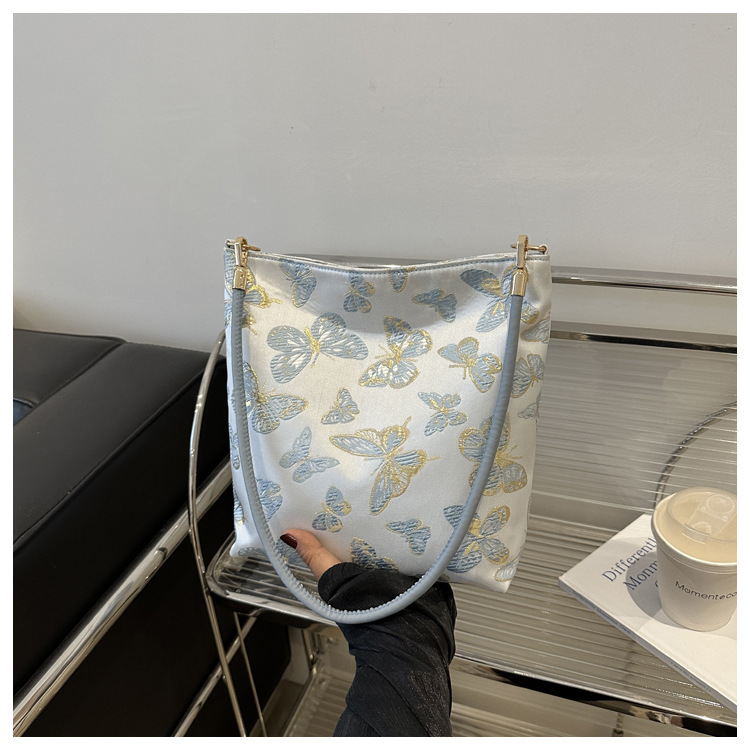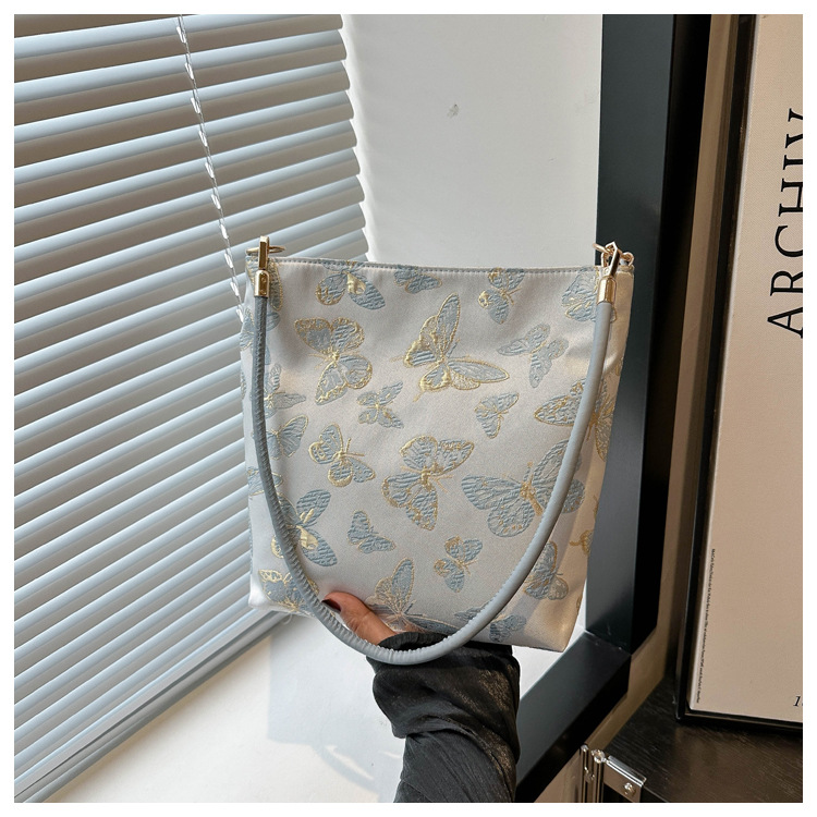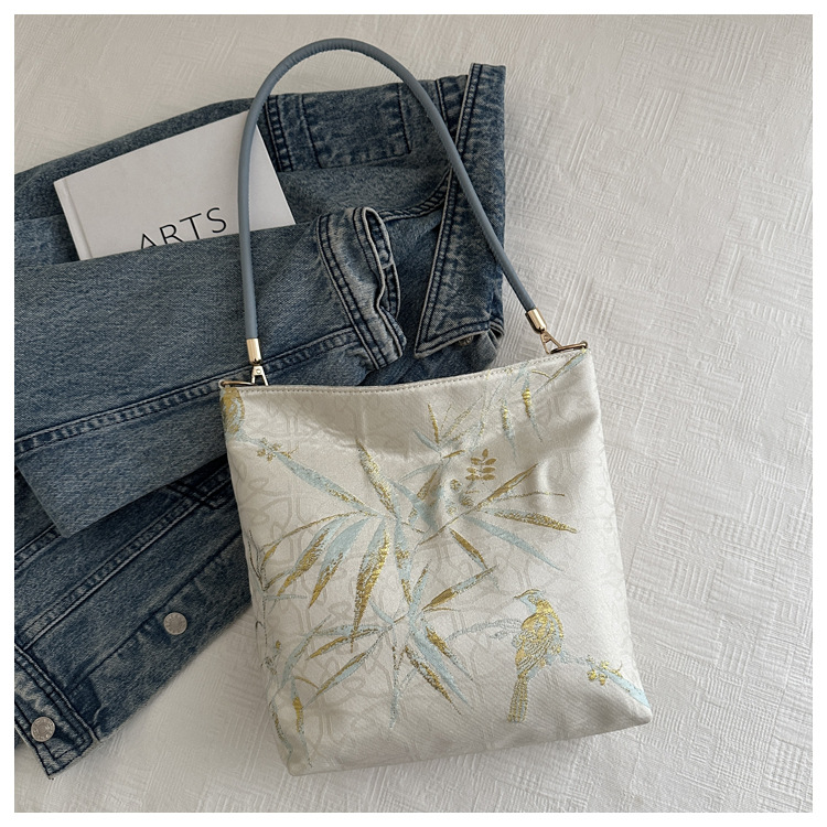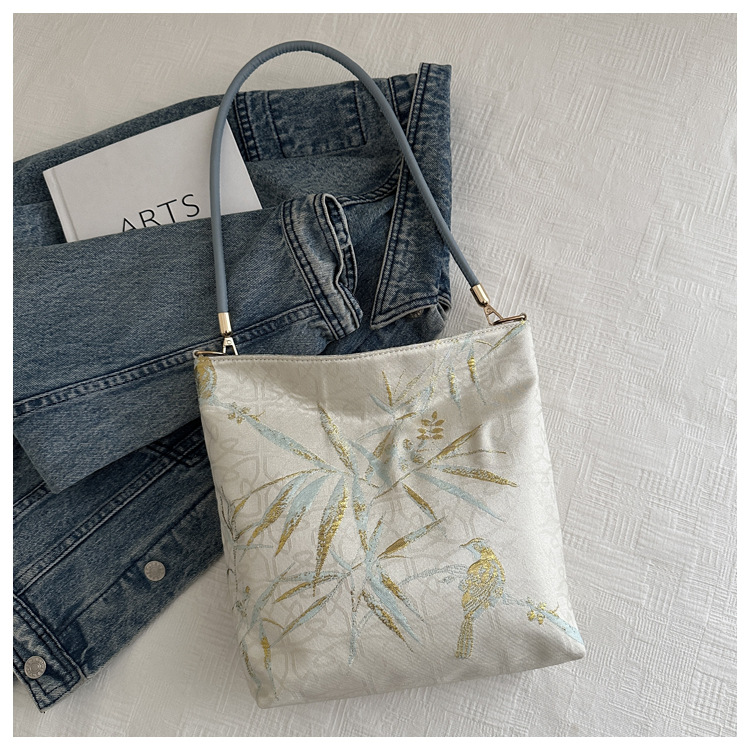 Elegante bordado de seda dorada de alta calidad bambú mariposa nuevo estilo 2024 nuevo estilo chino bolso debajo de la axila