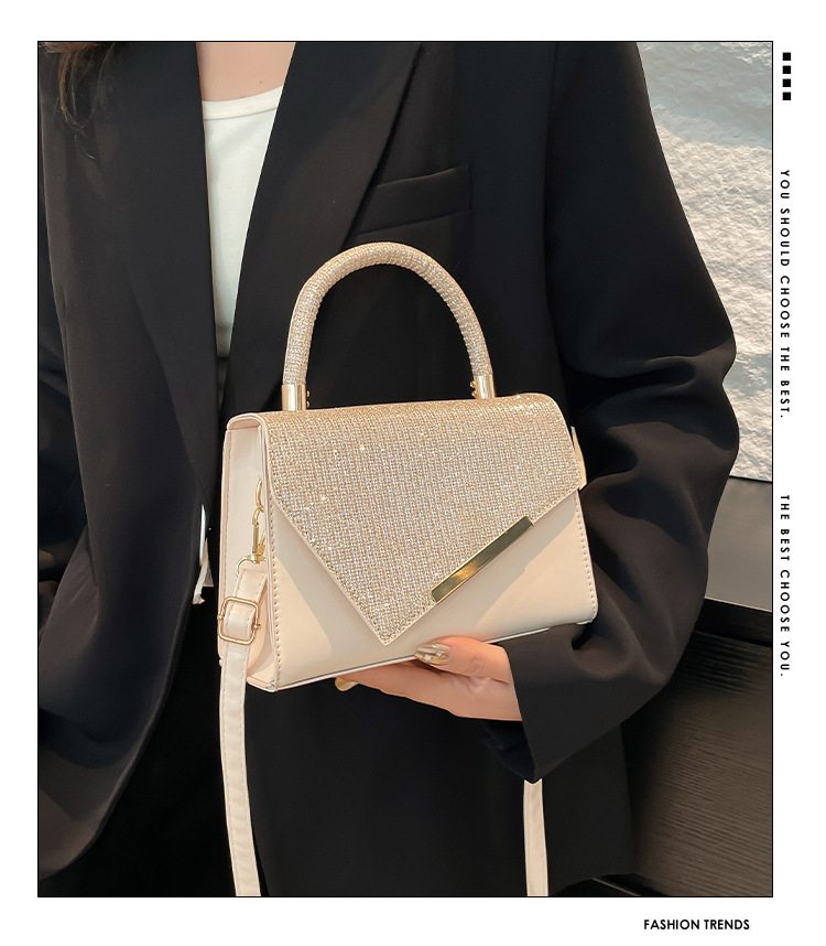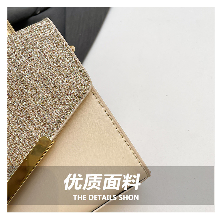 2024 otoño e invierno nuevo bolso de hombro temperamento occidental bolso de mensajero de diamantes brillantes diseño de nicho temperamento pequeño bolso cuadrado femenino