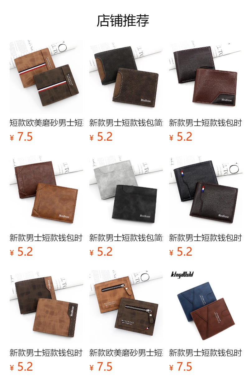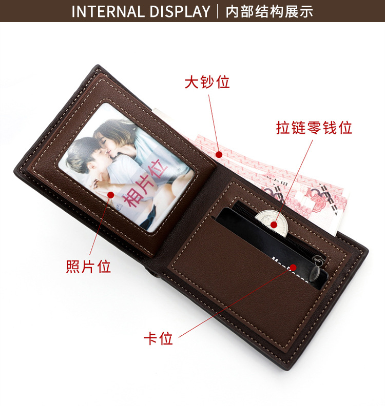 Personalizada nueva carpeta de los hombres de moda Simple de Los Hombres de la PU corta cartera monedero de la moneda de suministro directo de fábrica al por mayor