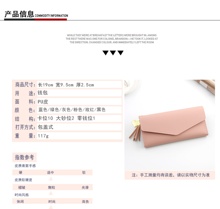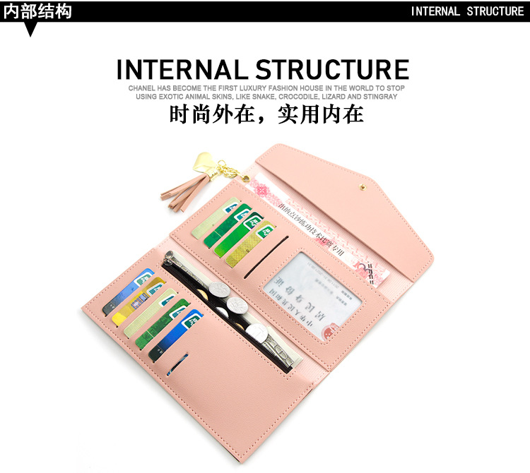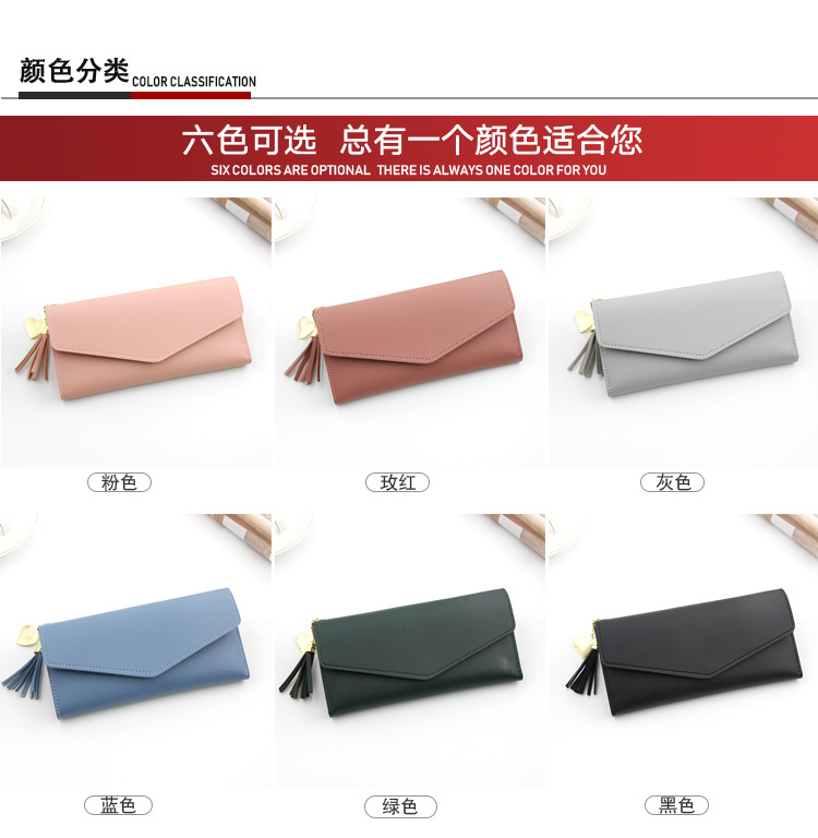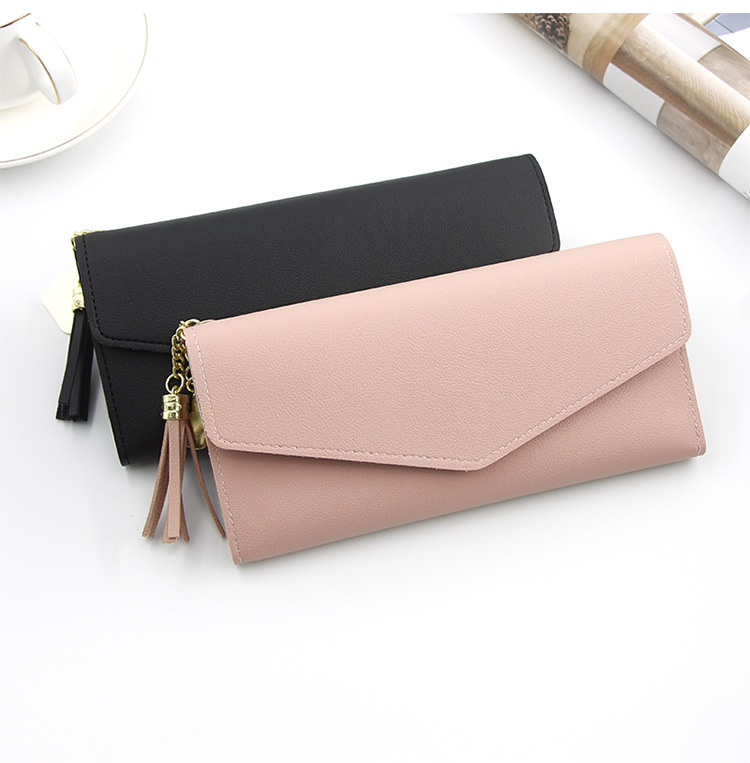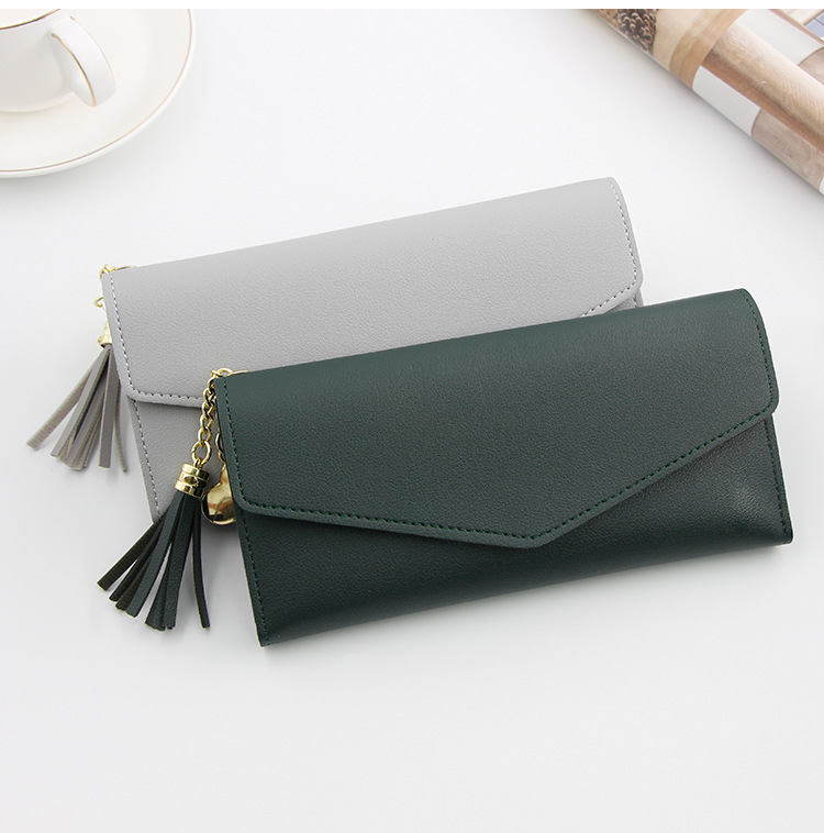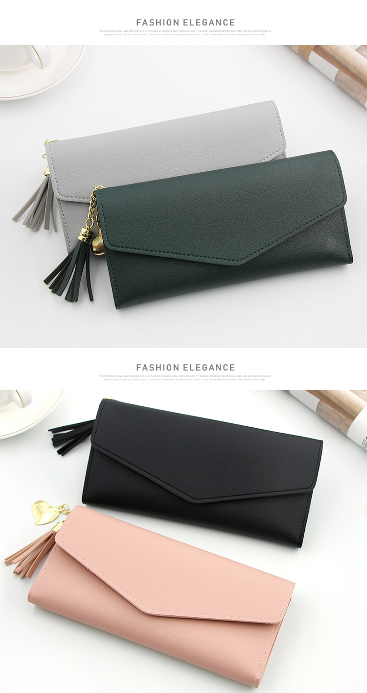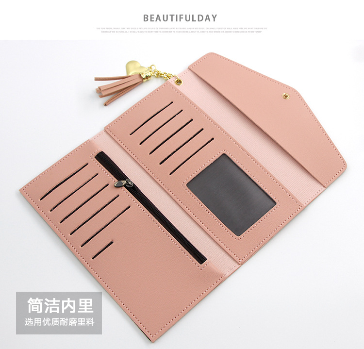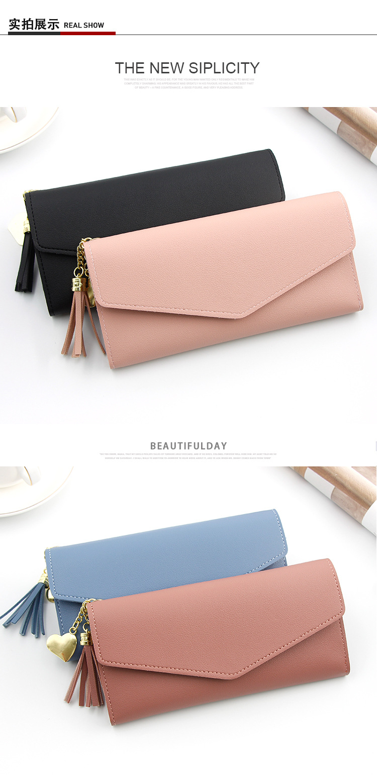 Nueva cartera de las mujeres de moda simple borla dulce dama larga cartera embrague multi-Tarjeta titular de la tarjeta