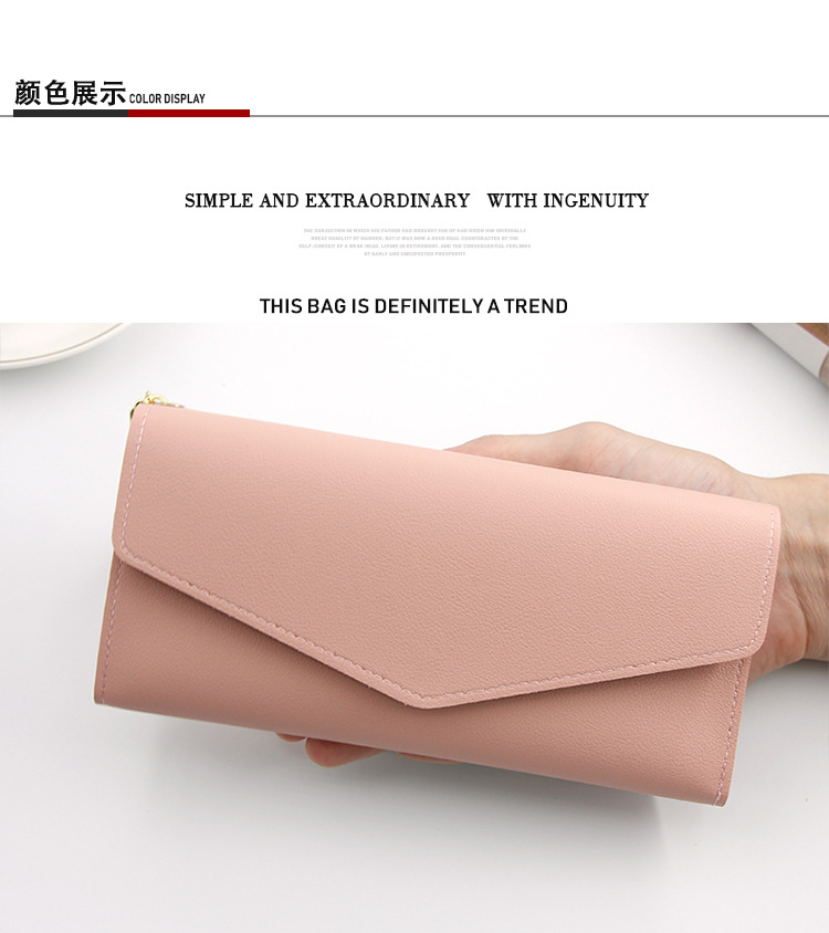 La billetera de la señora Labella, billetera larga coreana PU, bolso de tarjetas multi-tarjeta de tres plegados, simple y de color sólido, bolsa de tarjetas transfronterizas de moda.