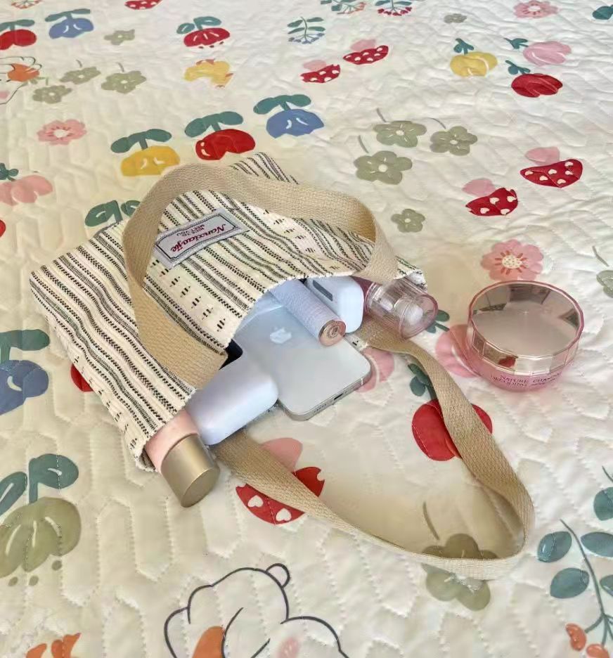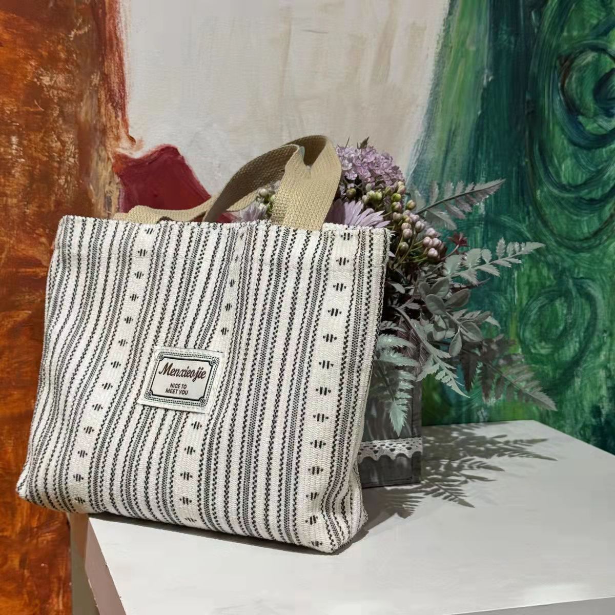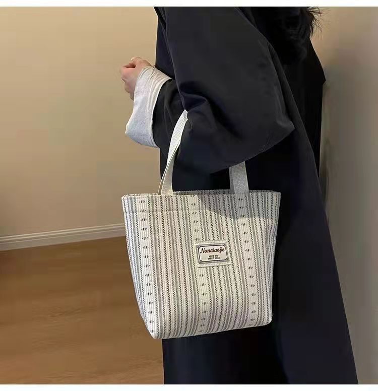 Ins bolso japonés de mujer gran capacidad bolsa de lona de moda rayas de hombro bolsa especial de clase de alto valor facial bolsa de viaje