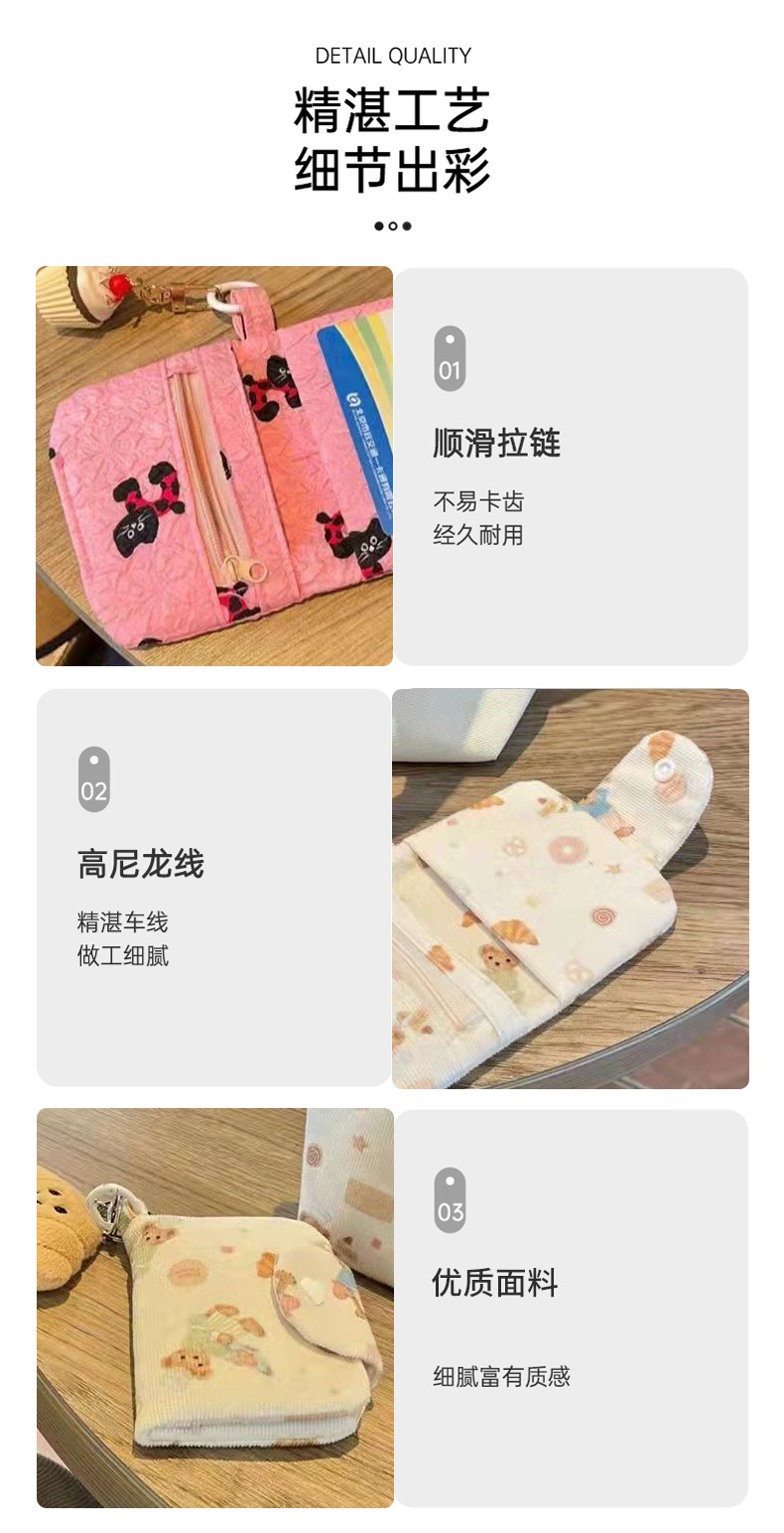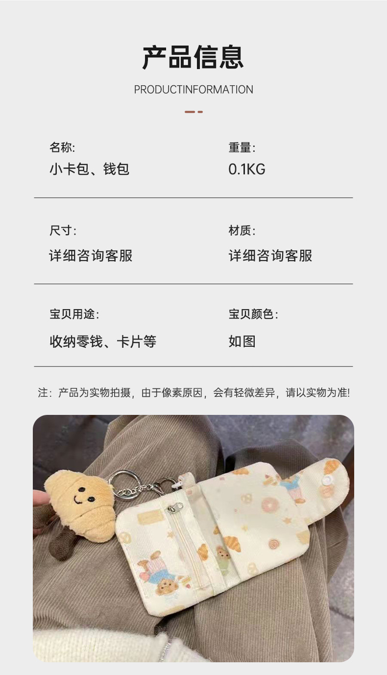 Nuevo adorable cartón de oso de pan, bolso de cambio de gran capacidad, bolso de tarjeta de identificación, tarjeta bancaria, bolso multicapa