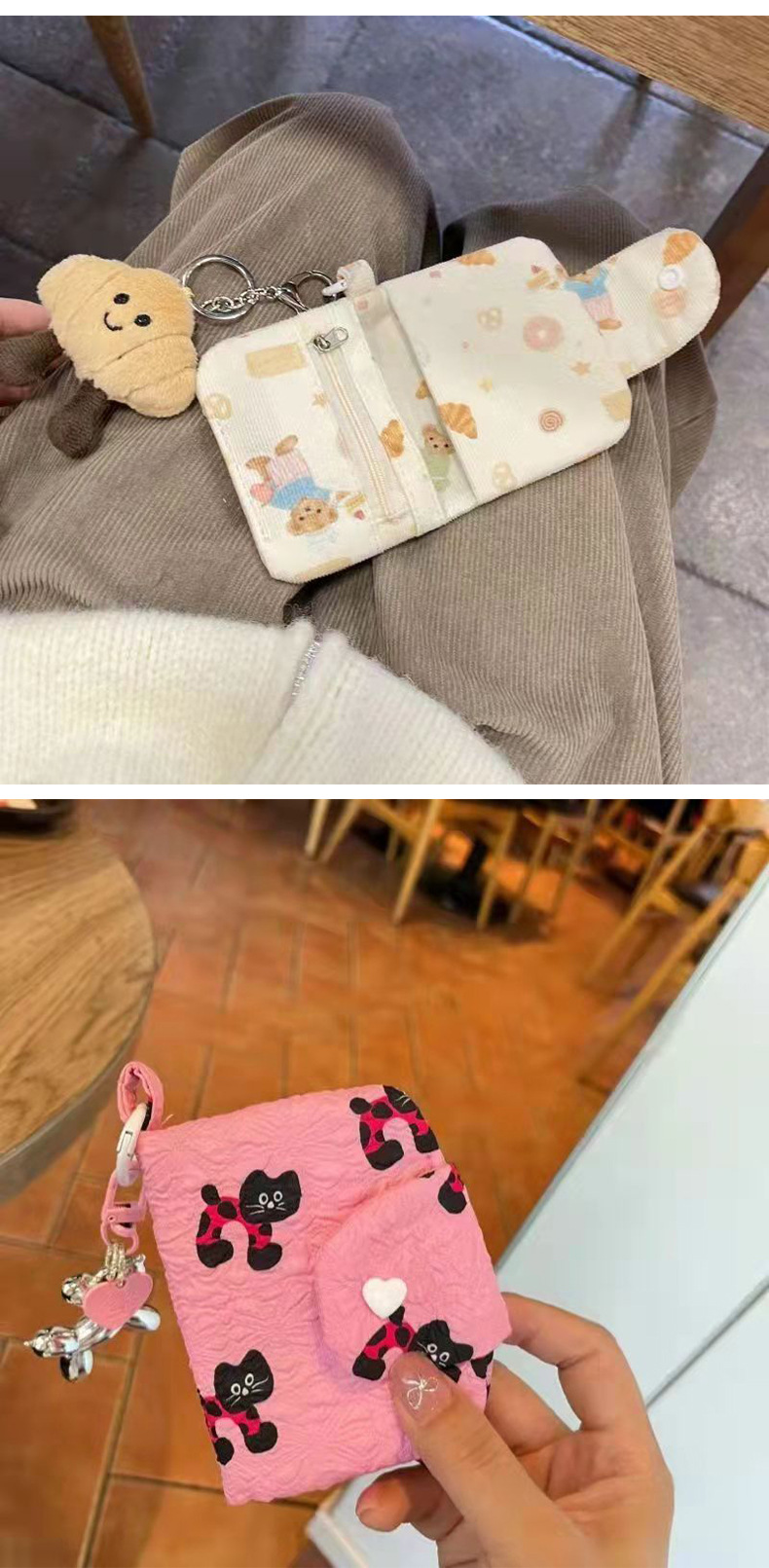 Bolso de tarjeta de oso blanco rayado, bolso de tarjeta de gatito de piel negra rosa, bolso de tarjeta de oso de pan blanco