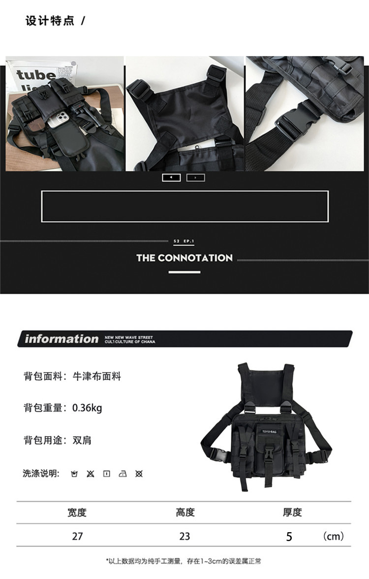 Bolsa de pecho táctica marca de tendencia nueva inns hombre y mujer estilo de puerto hombro bolsa de pecho herramientas al aire libre chaleco tipo mochila táctica