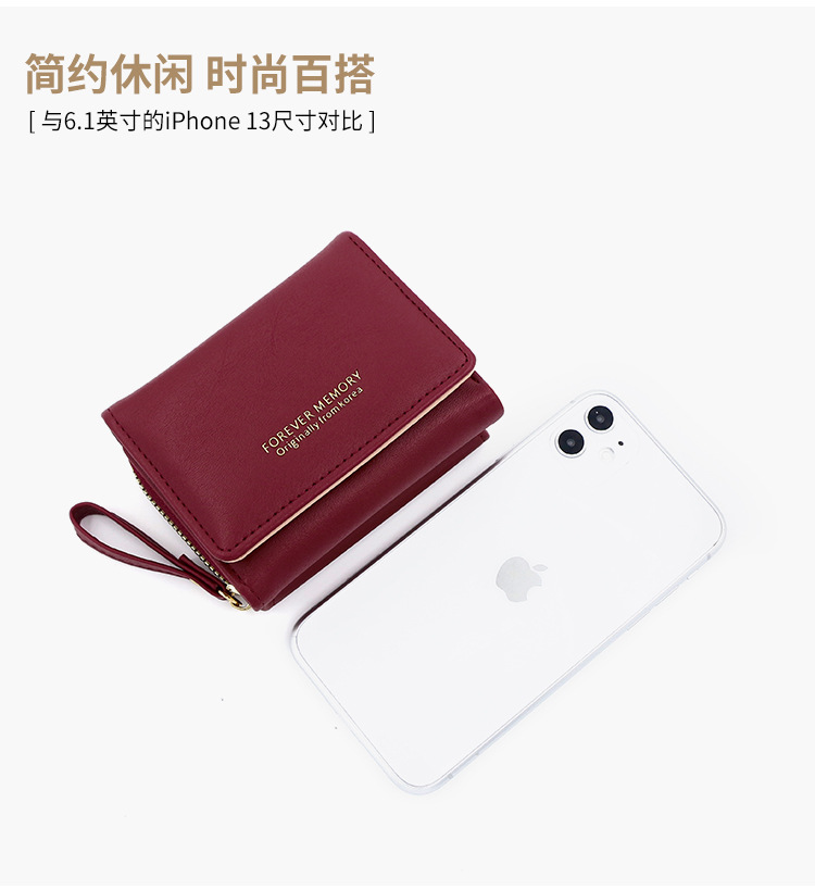 Cartera de Mujer Nueva 2023, Cartera Corta de Cuero PU con Cremallera, Monedero Triple, en Existencia, Versátil, al por Mayor