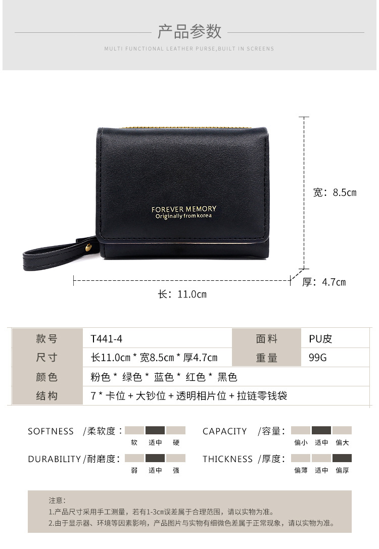 Nueva cartera corta de las mujeres simple color sólido PU tríptico bolso monedero multi-Tarjeta titular de la cartera billetera al por mayor