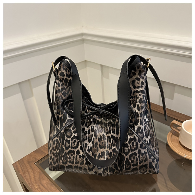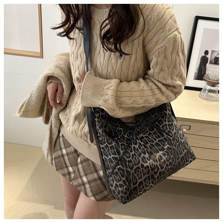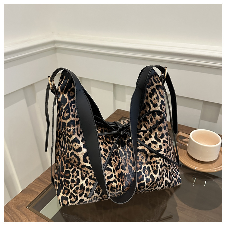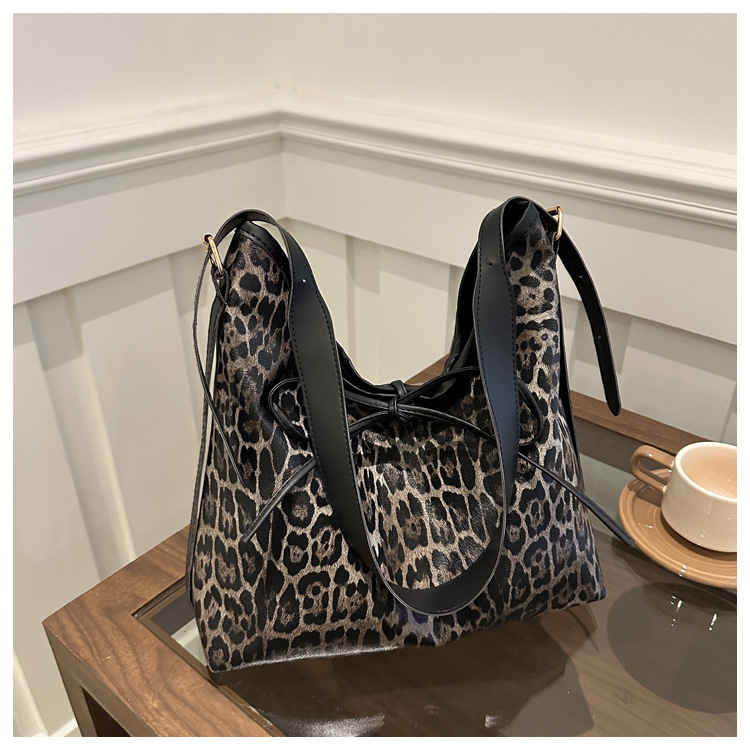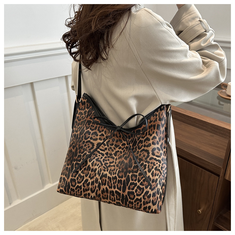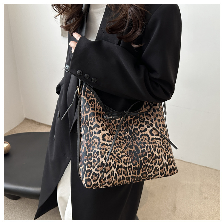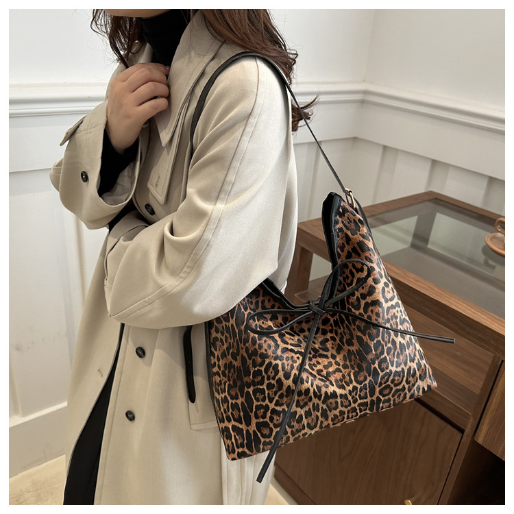 Bolsa de leopardo retro esmaltada para mujeres 2024 nueva moda bolso de hombro de brazo otoño y invierno gran capacidad bolso de viaje