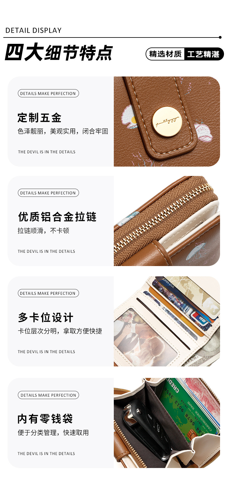 Nuevo bolso corto para mujeres comercio exterior cartera encantadora multifuncional bolso de cambio plegable bolso de monedas bolso de tarjetas múltiples