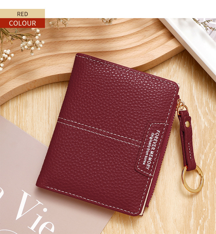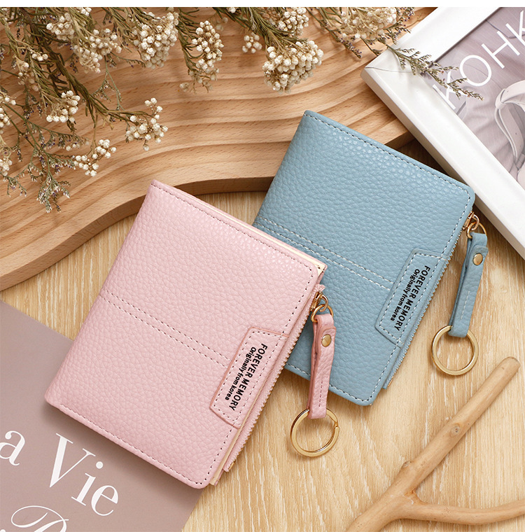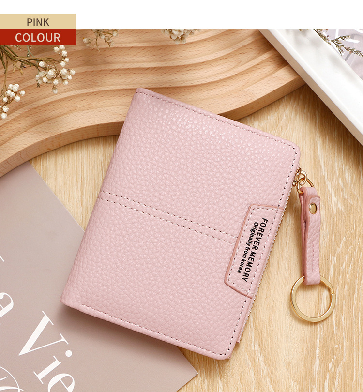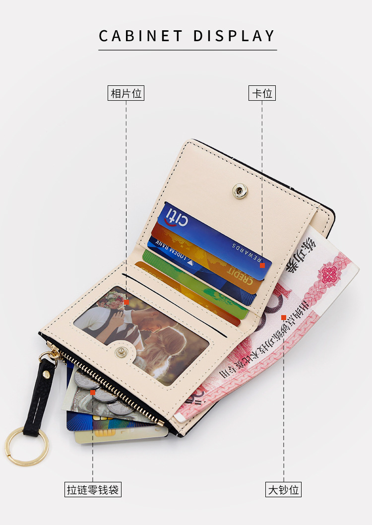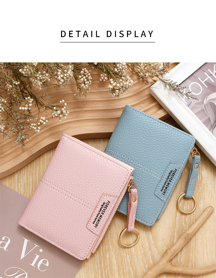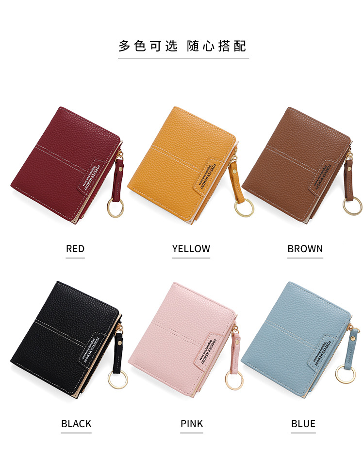 Versión coreana de la nueva billetera corta para mujer, llavero simple, billetera de monedas, billetera de dos pliegues para estudiantes al por mayor