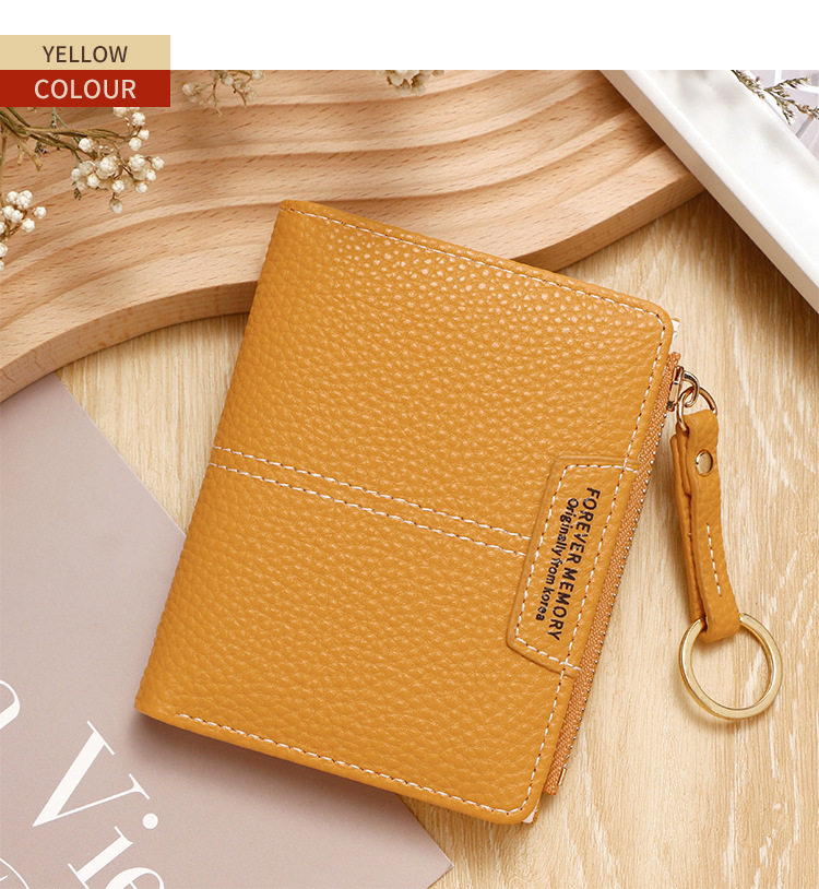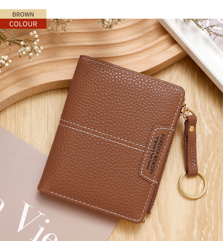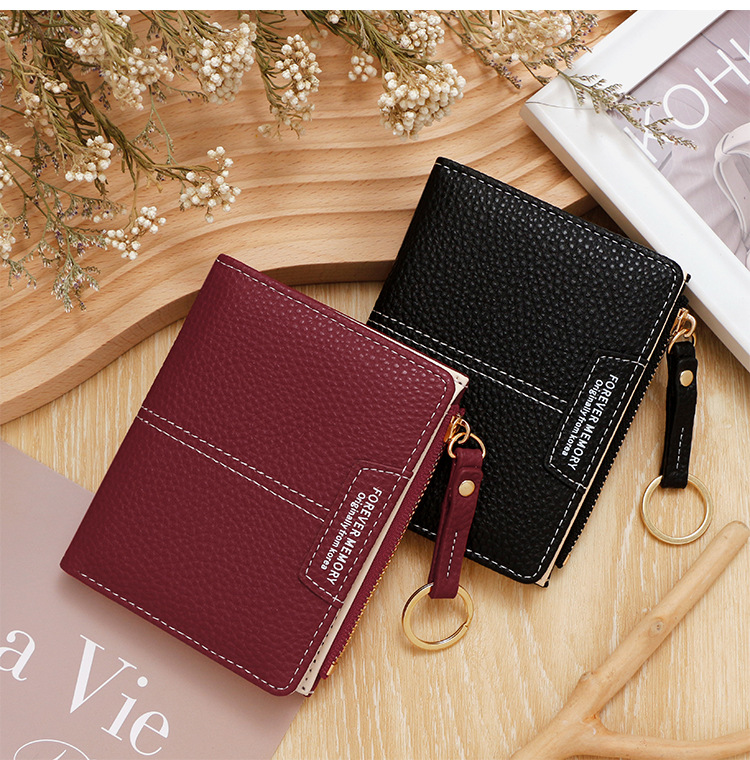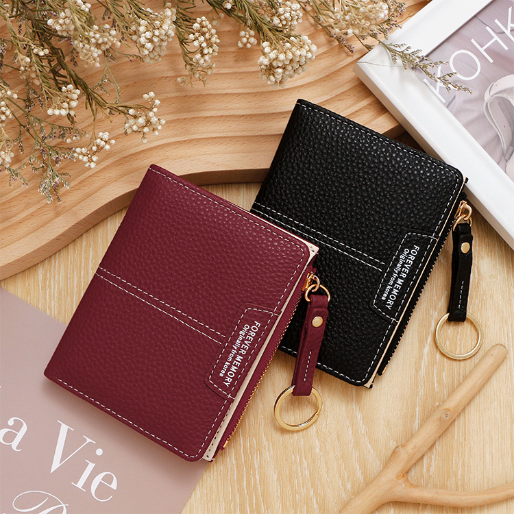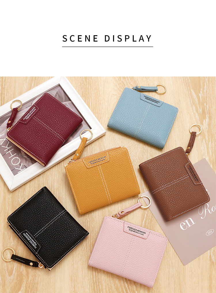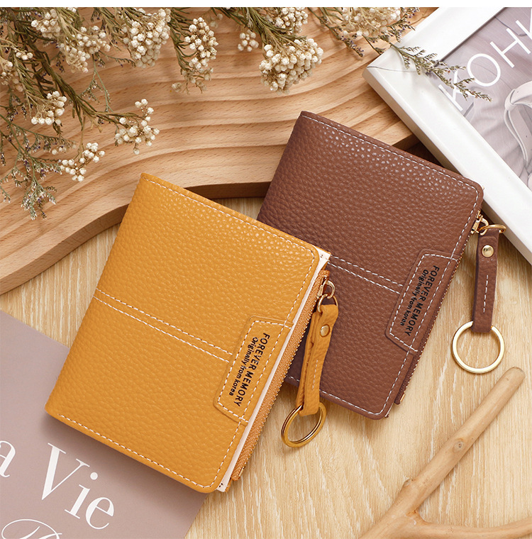 Versión coreana de la nueva billetera corta para mujer, llavero simple, billetera de monedas, billetera de dos pliegues para estudiantes al por mayor
