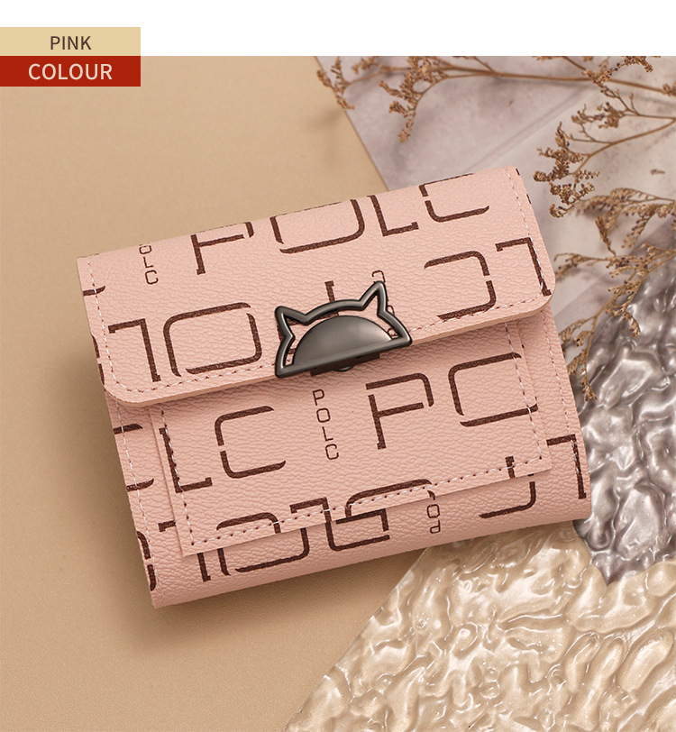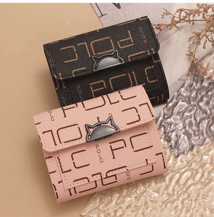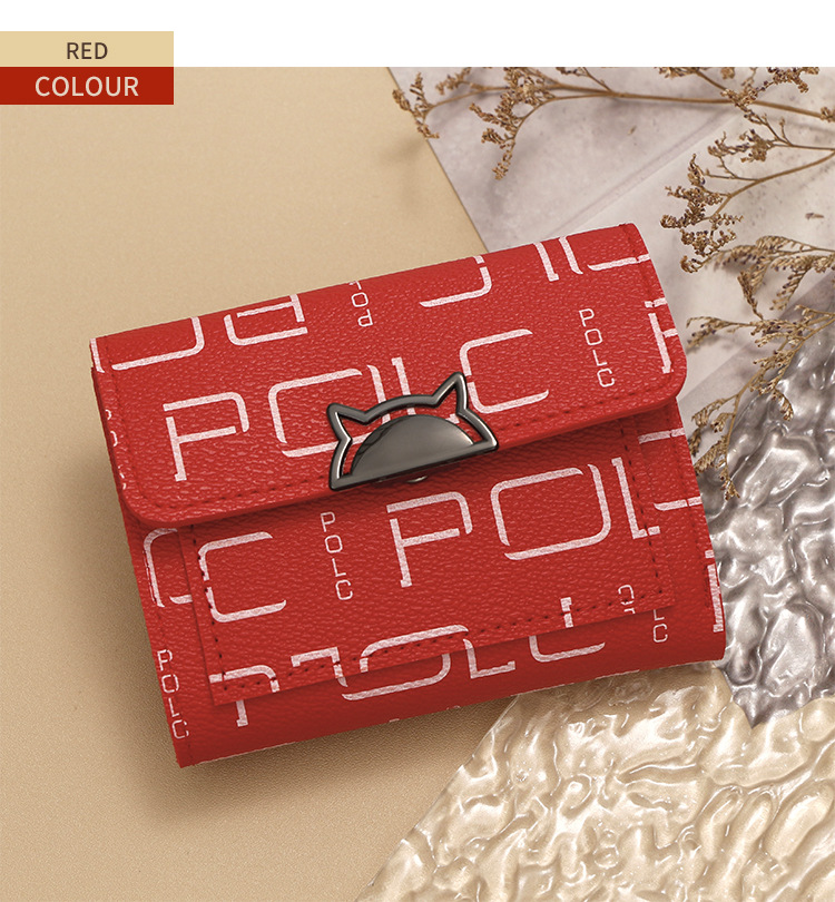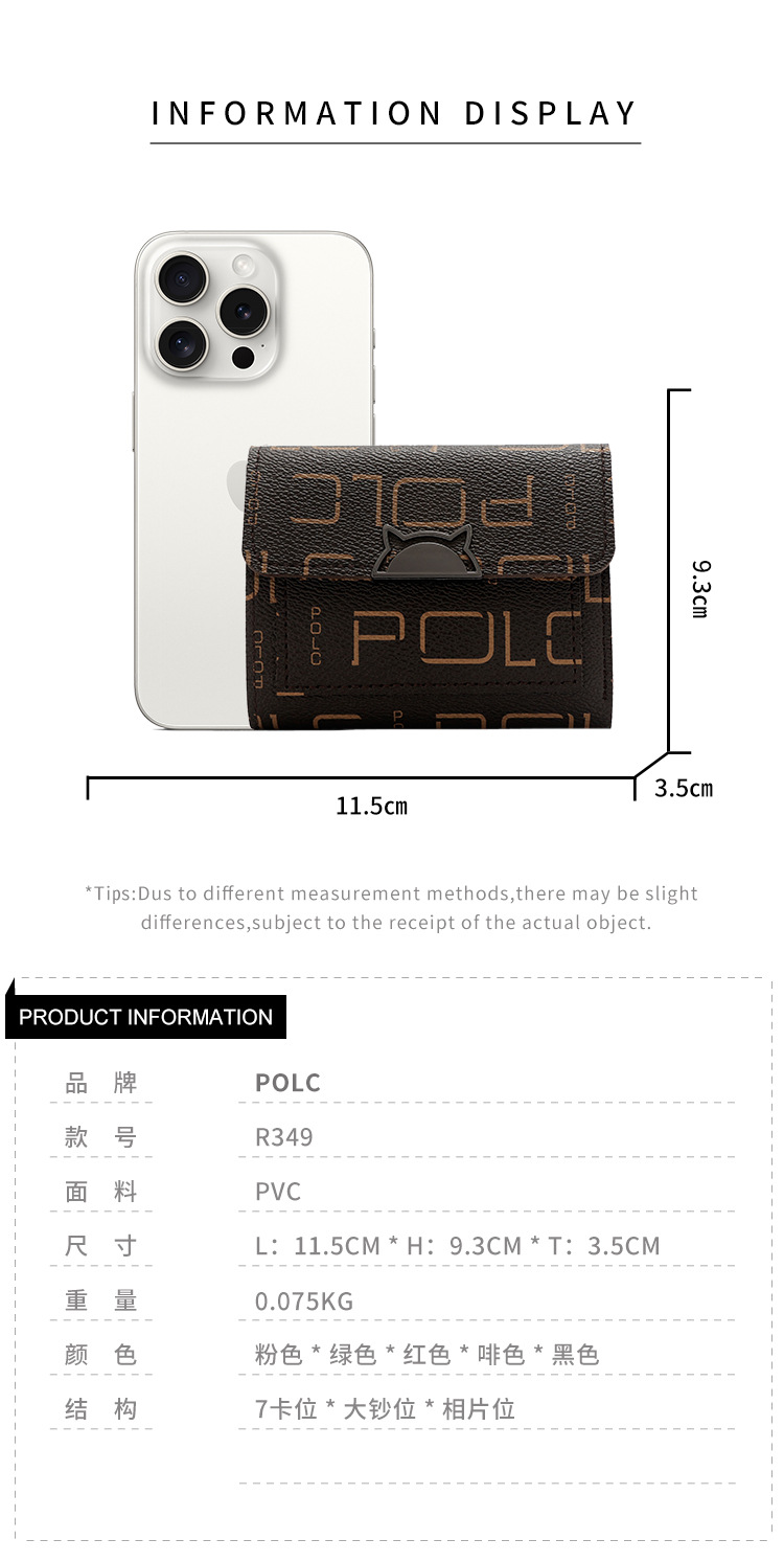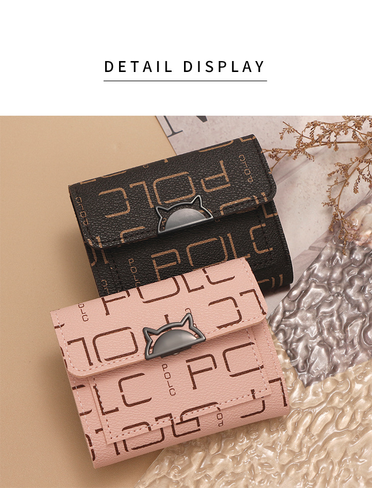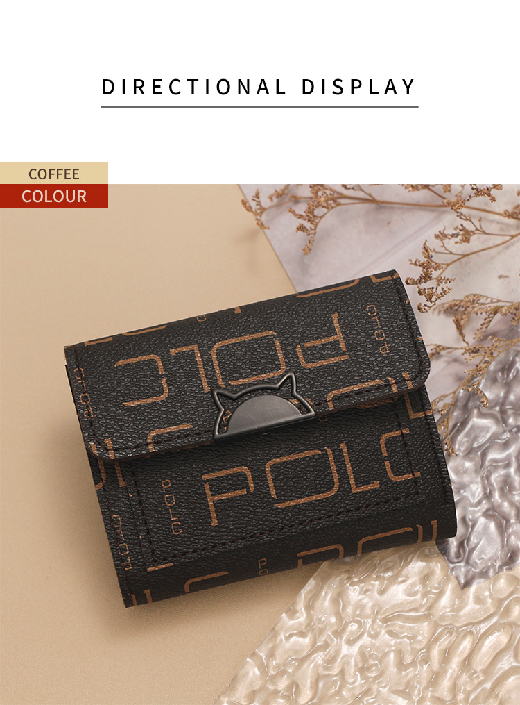 POLC nueva billetera corta de moda letras impresión de tres plegados cartera bolso de mano bolso de cambio al por mayor