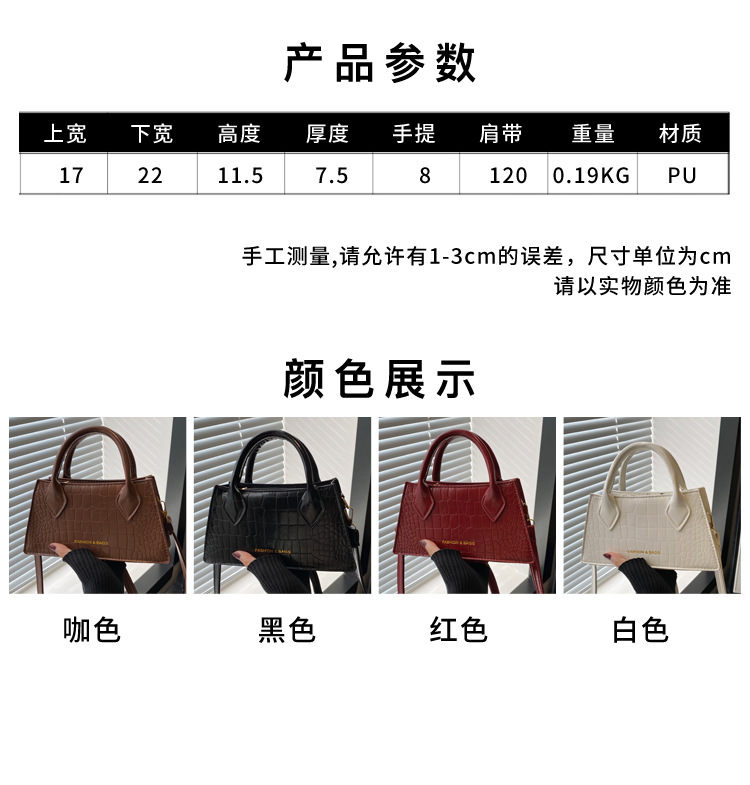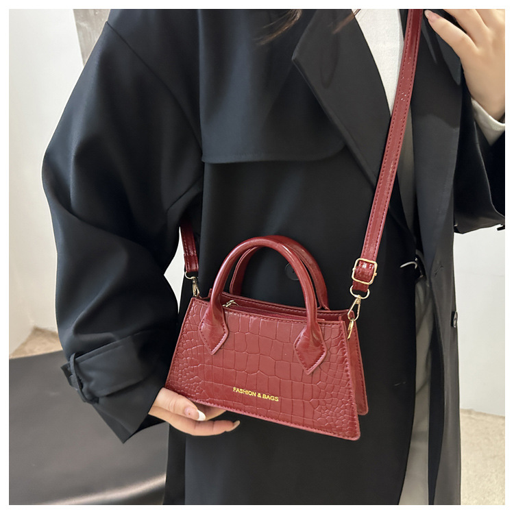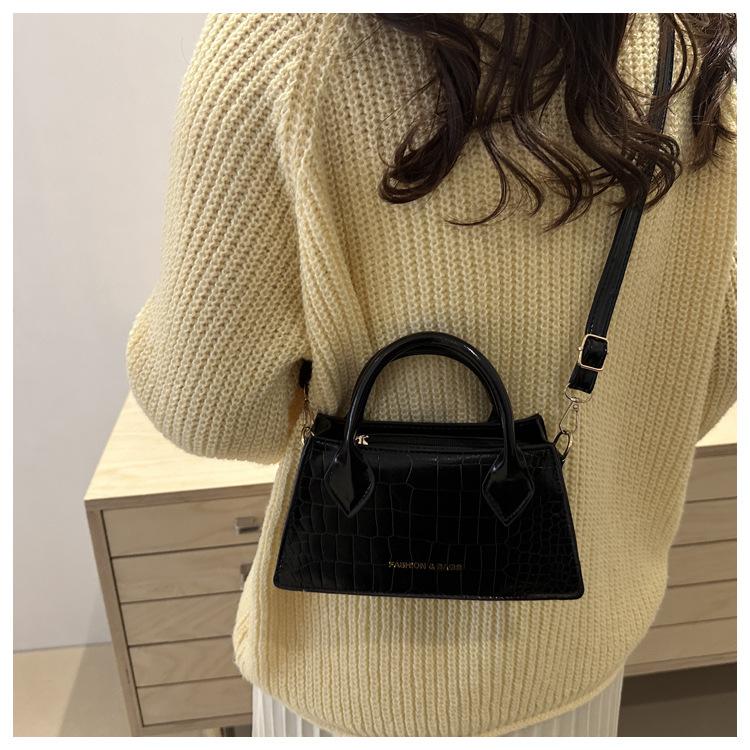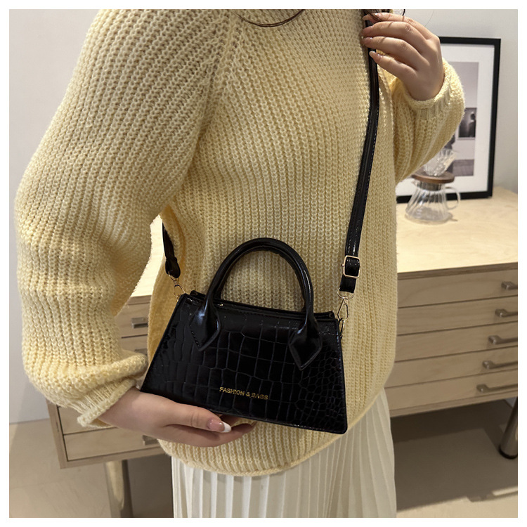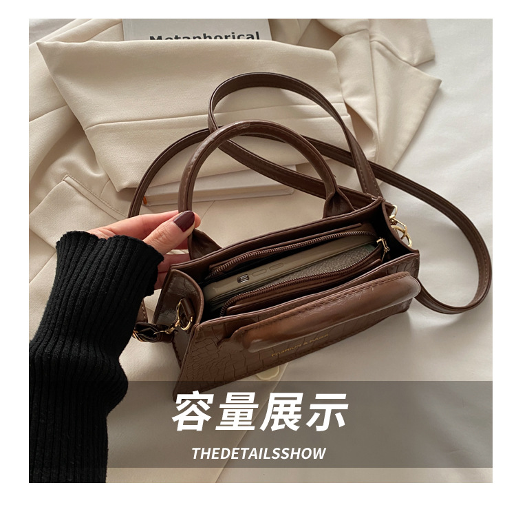 2025 nuevo bolso de mensajero casual de estilo occidental simple de textura retro, bolso cuadrado pequeño, bolso de moda con patrón de cocodrilo