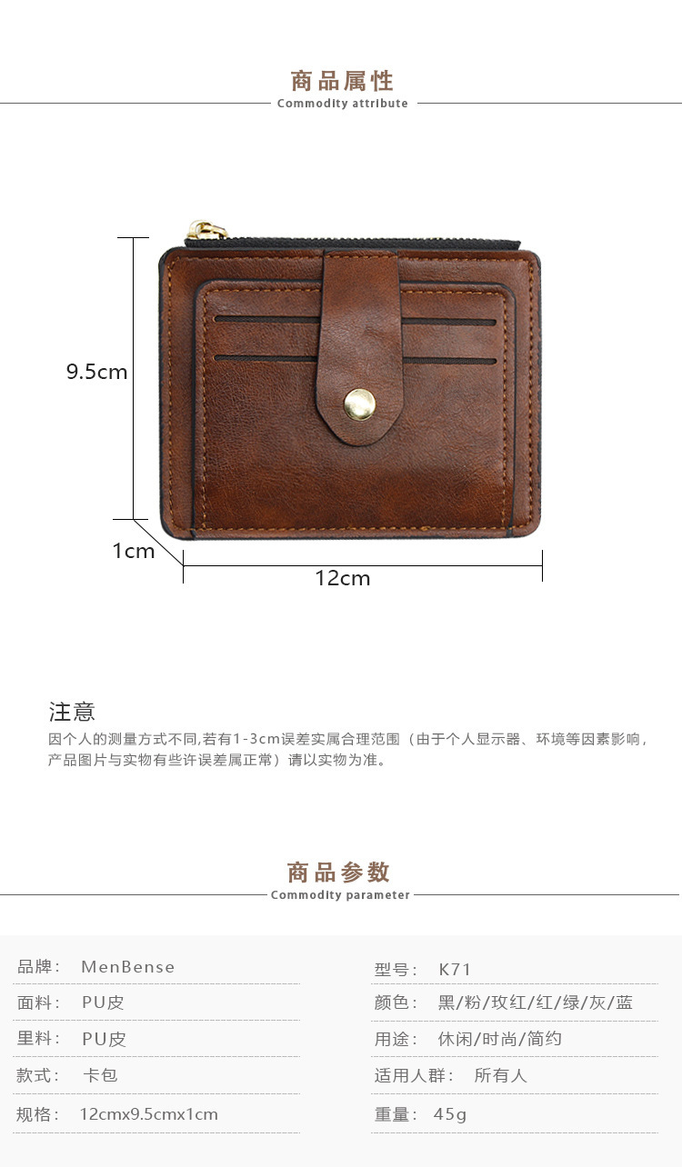 Bolsa de tarjeta bancaria de posición de tarjeta múltiple ultrafina, funda de tarjeta corta minimalista, monedero de cuero para hombre, murciélago de equipo de héroe transfronterizo