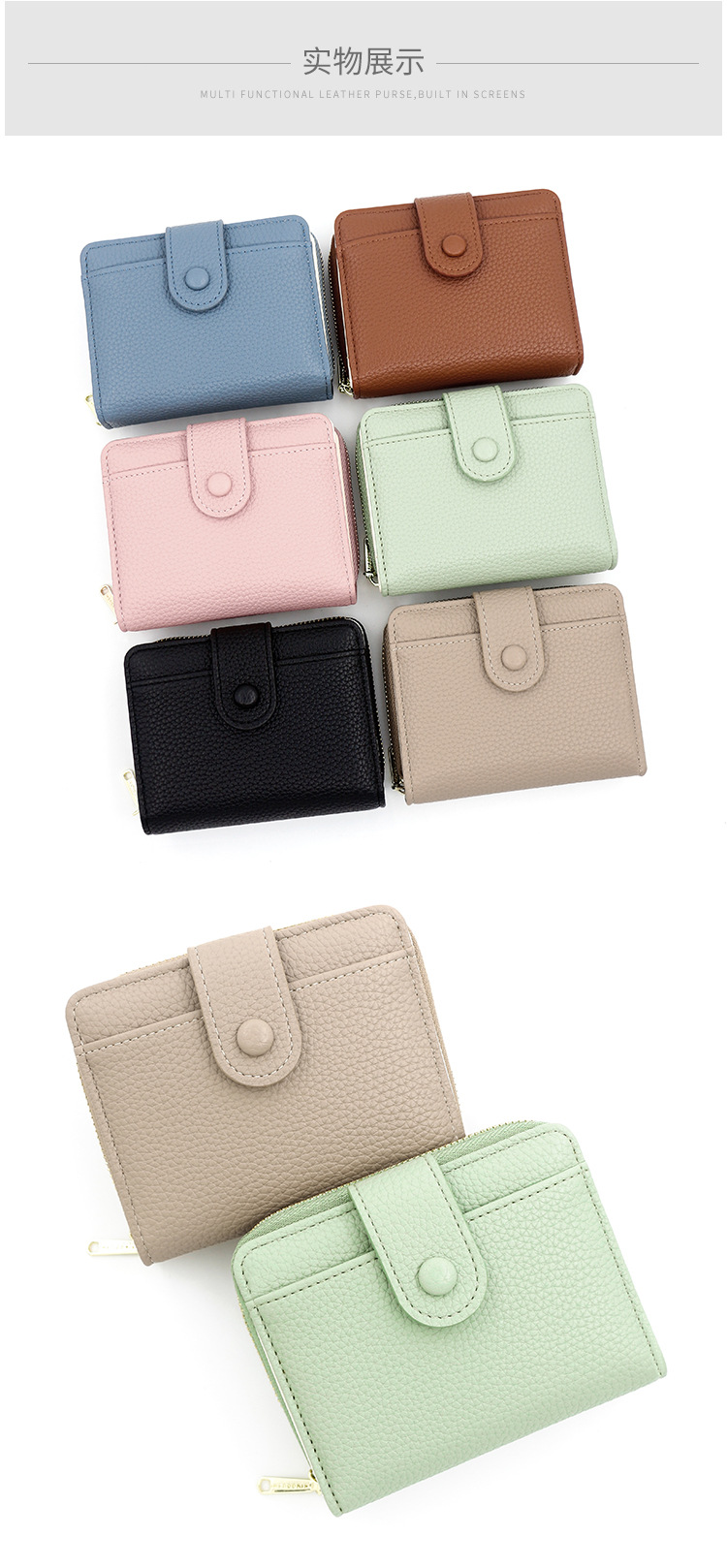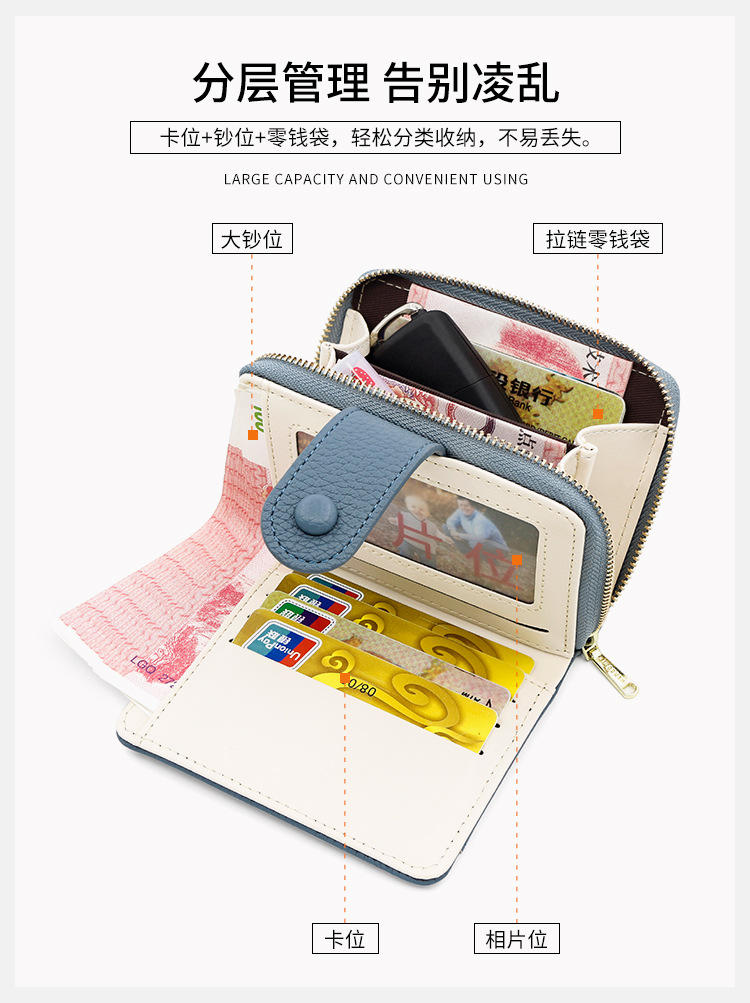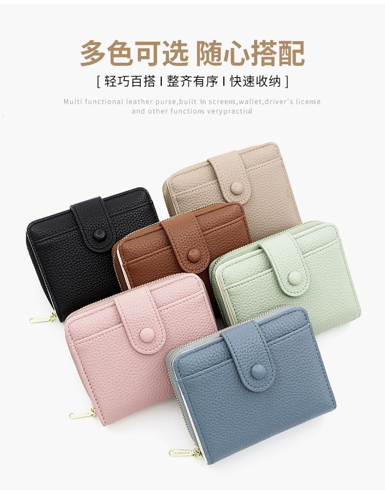 Nuevo monedero de cambio corto y simple transfronterizo, bolsa de monedas con cremallera mini ultra delgada multi-tarjeta bolso de botón de billetera