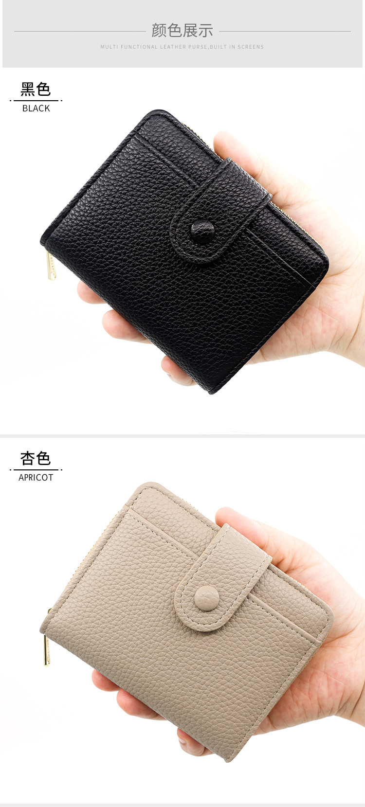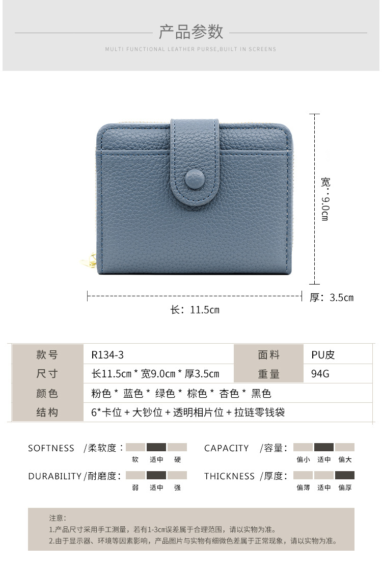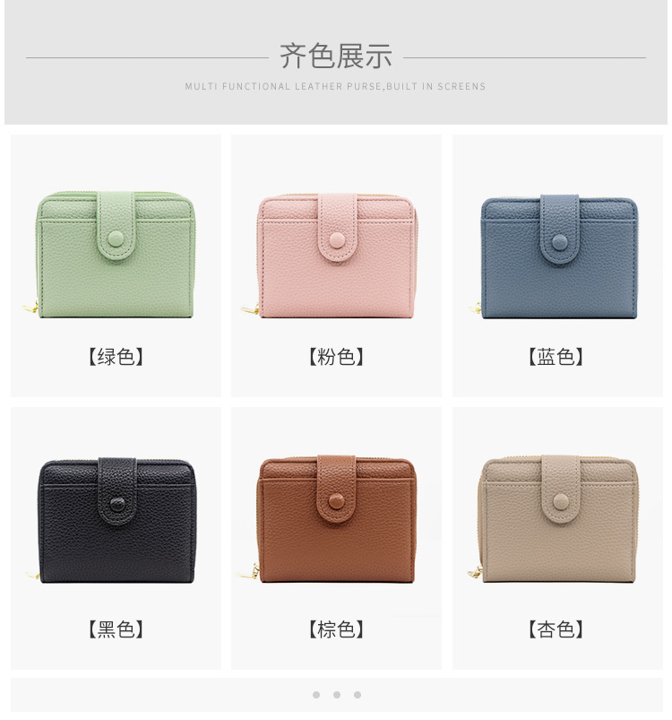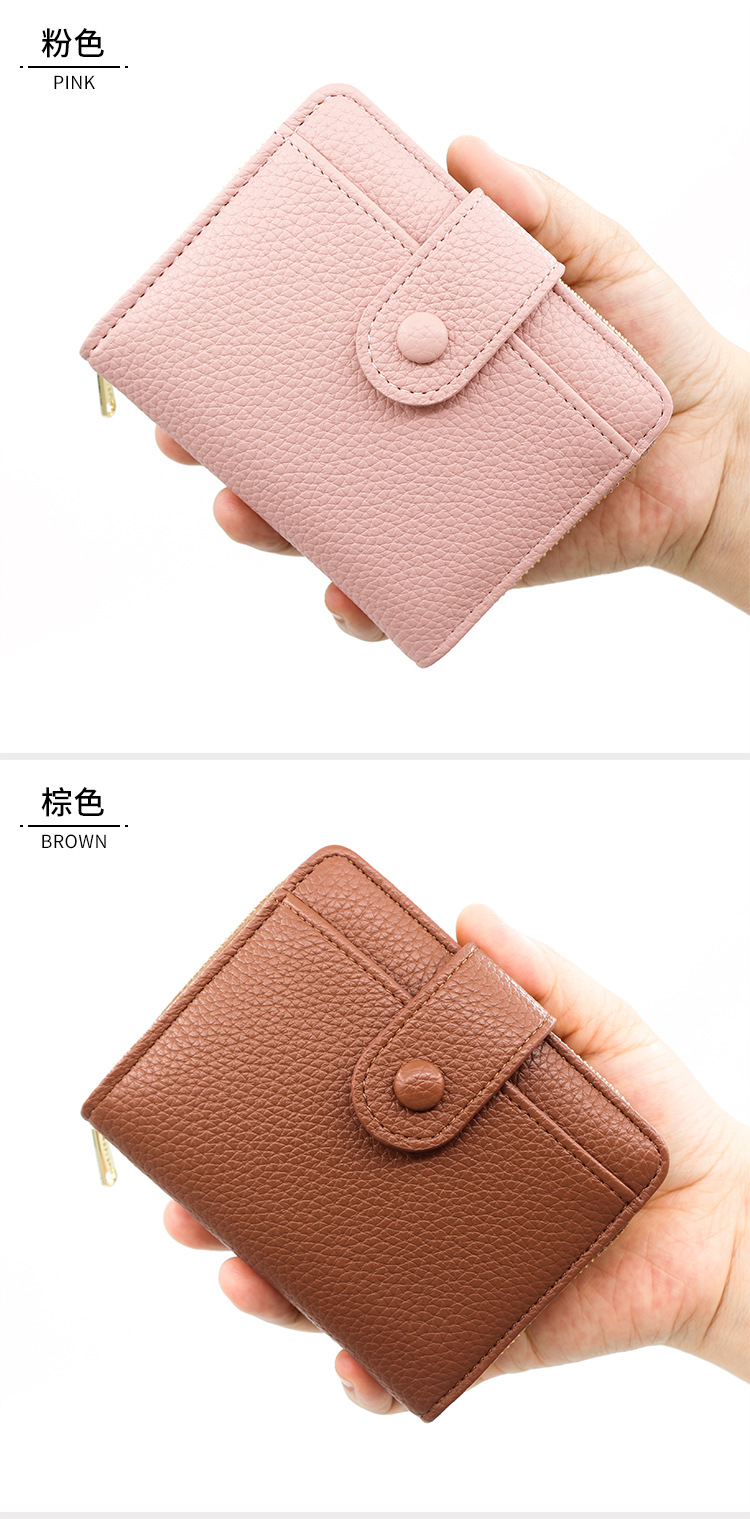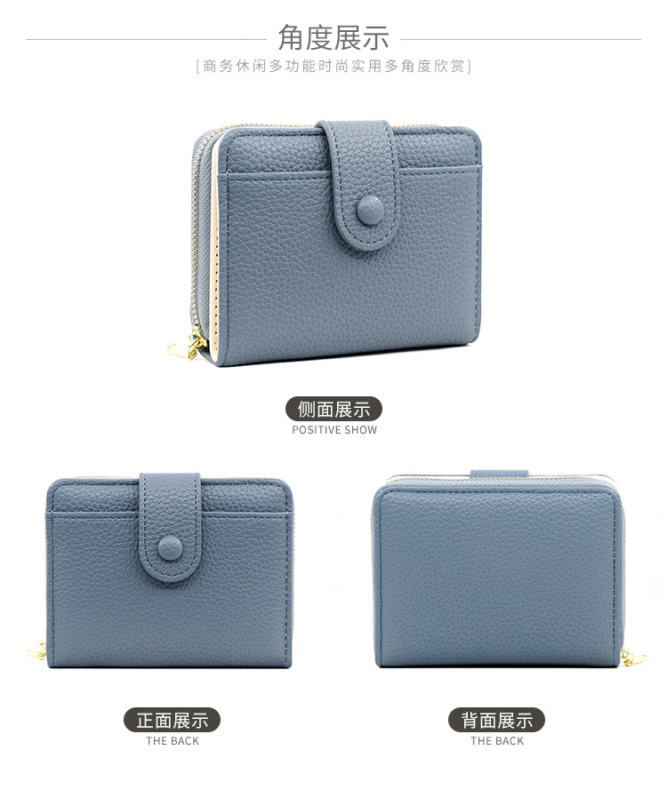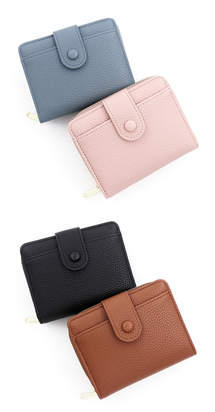 Botón Cartera para mujer Estilo corto con cremallera Cartera para múltiples tarjetas Cartera para mujer triple Wallet Women para mujer