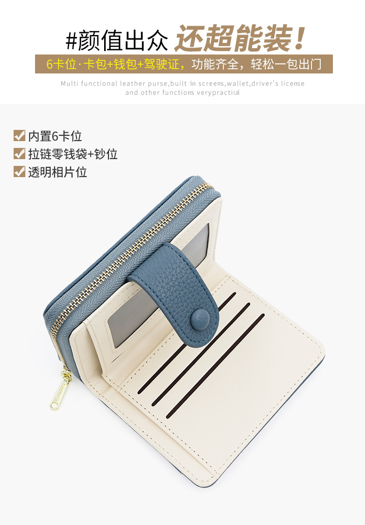Cartera de venta caliente transfronteriza para mujeres 2024 nueva textura de la cartera de mujeres estilo coreano color contraste cartera corta