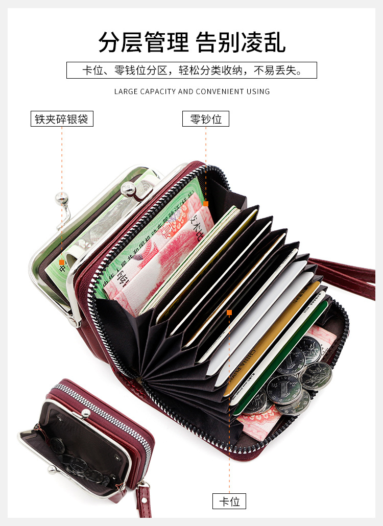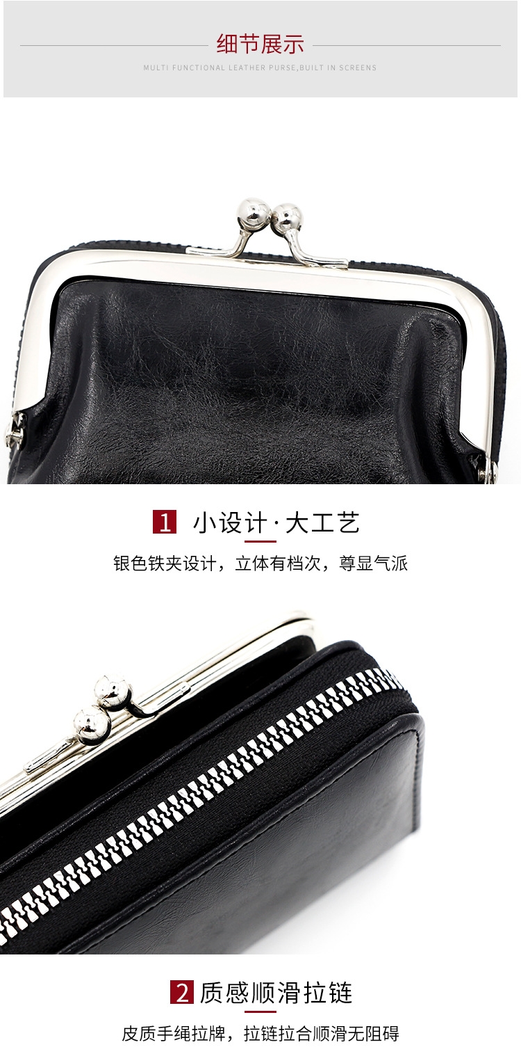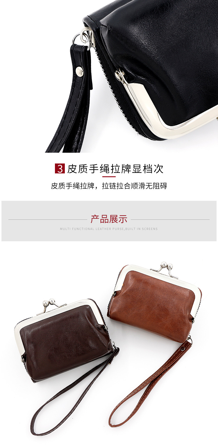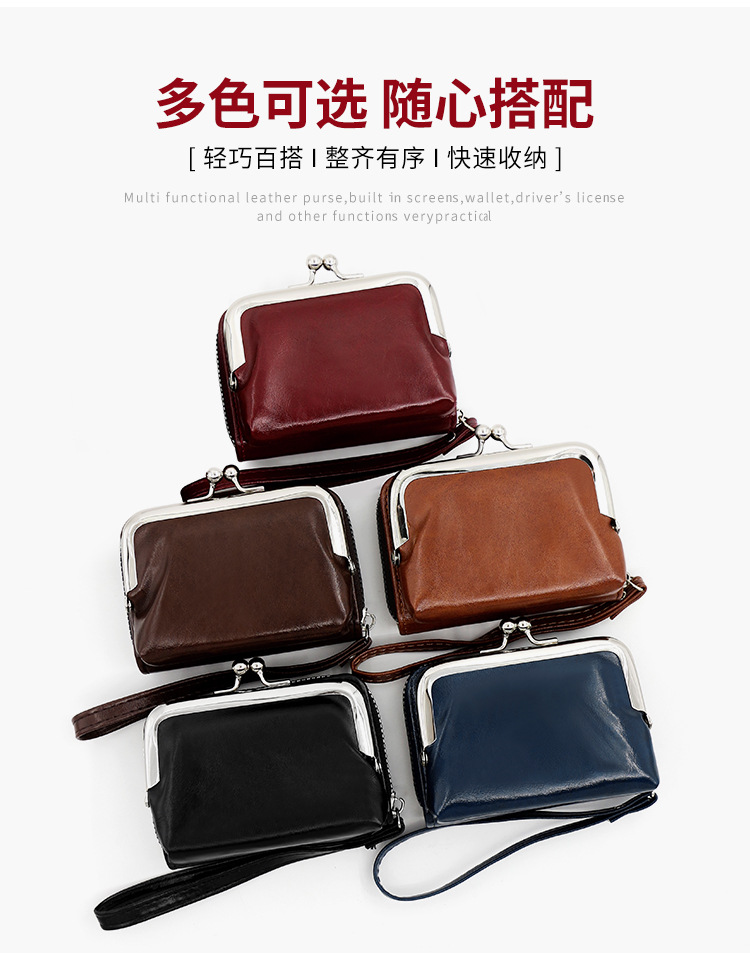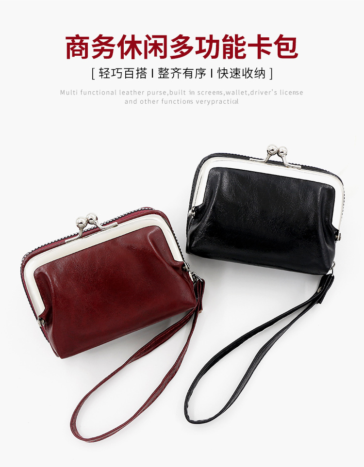 Kingdushi nueva moda bolso de tarjeta de cambio bolso de mujer transfronterizo con hebilla monedero con cremallera de 4 pulgadas bolso de mano