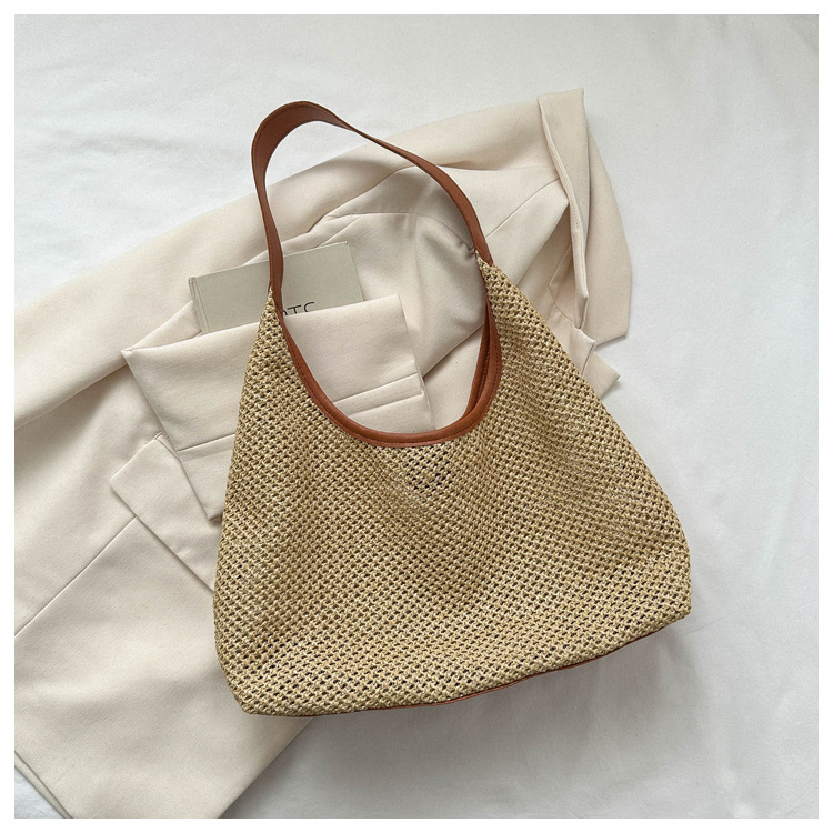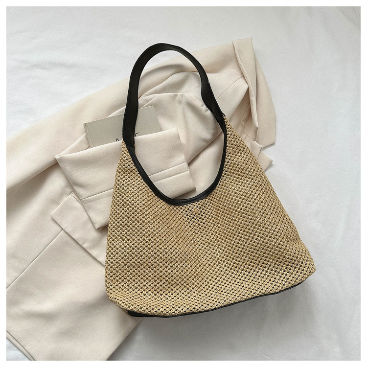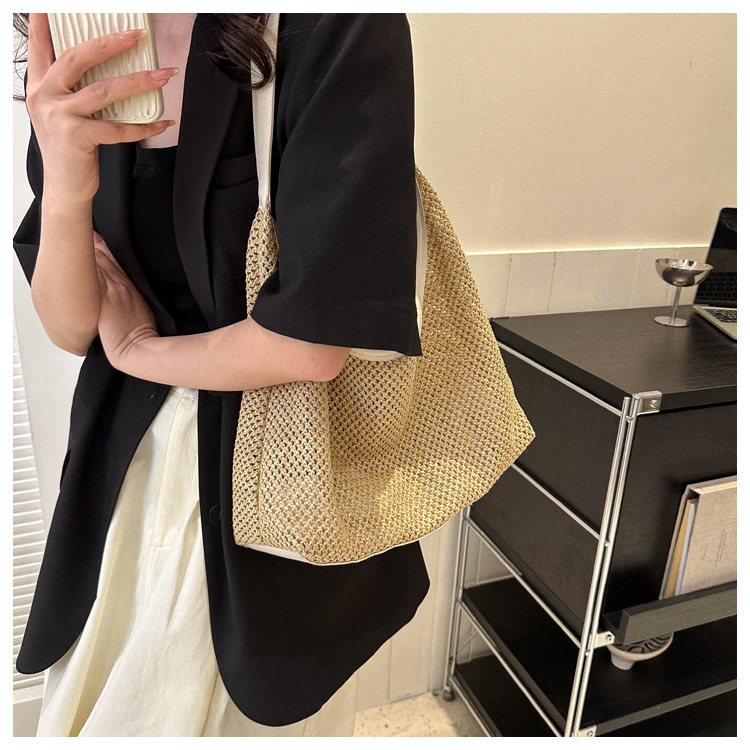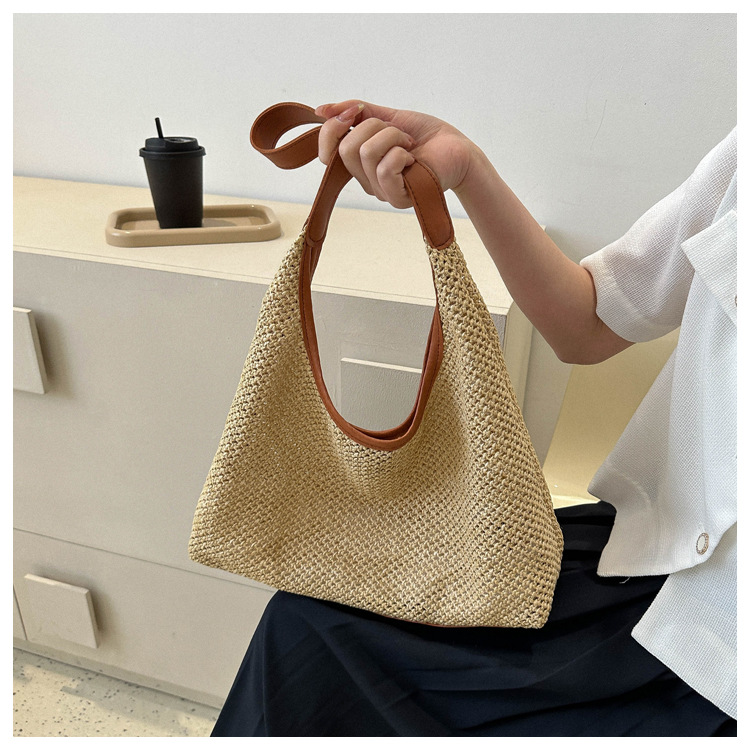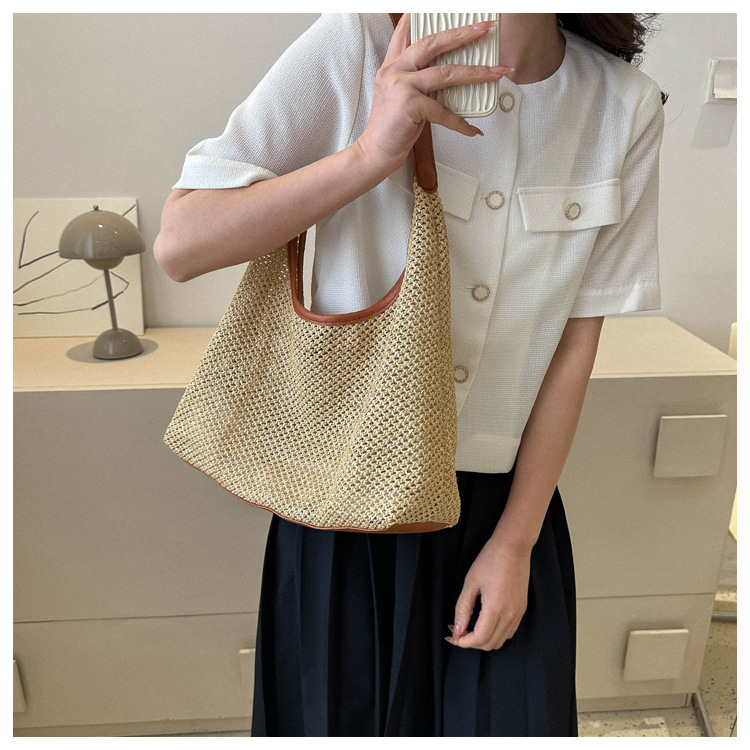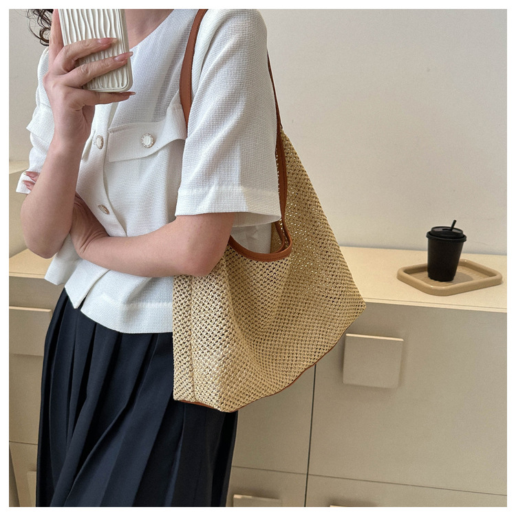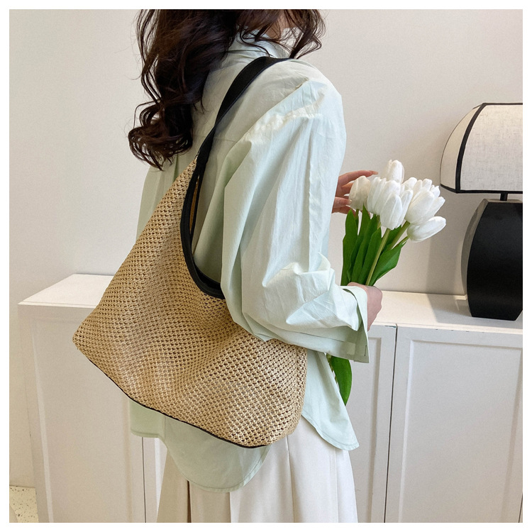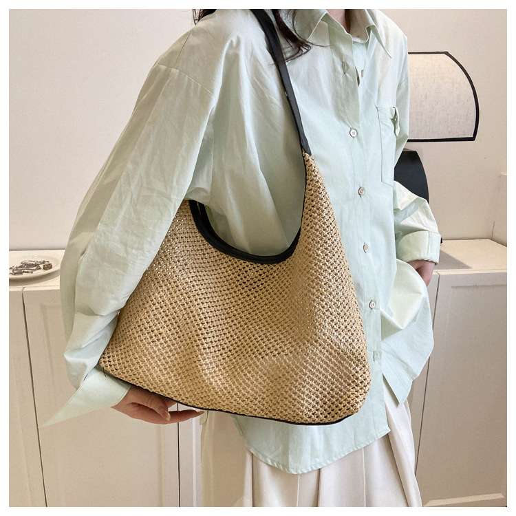 Bolso tejido de moda femenino 2023 nuevo bolso retro de moda bolso de paja bolso de hombro de gran capacidad de todo fósforo