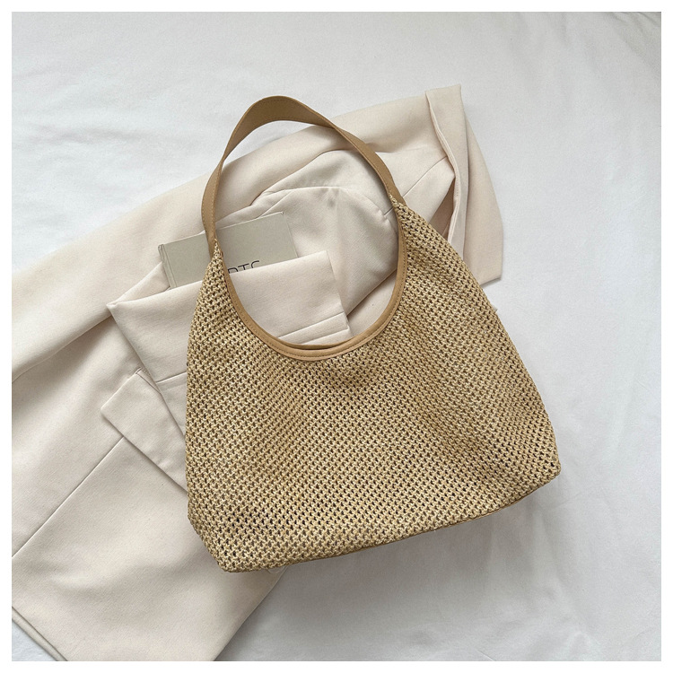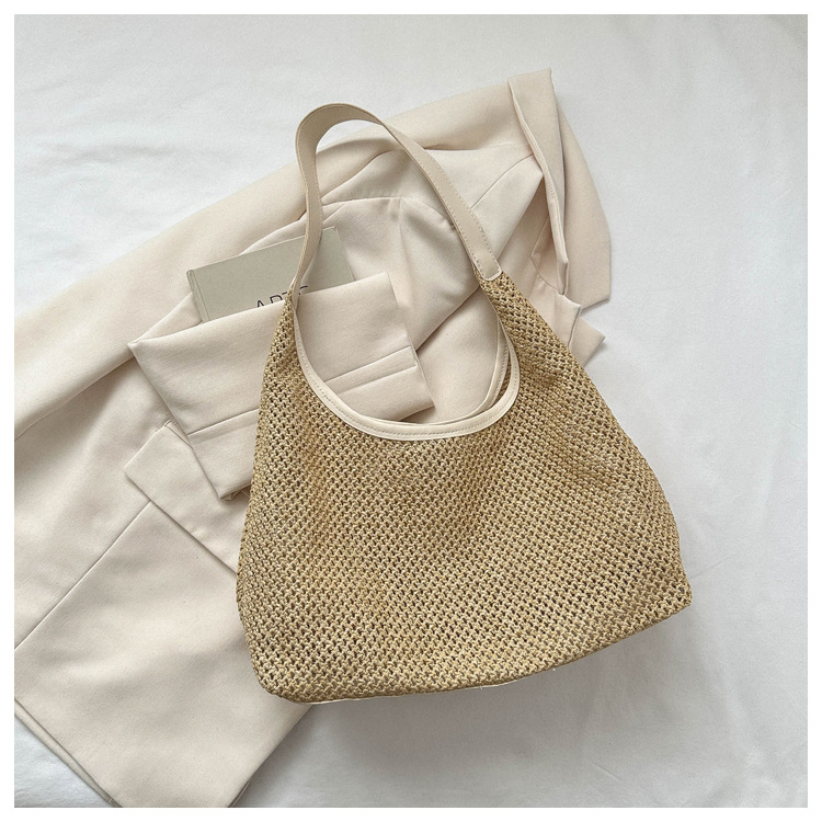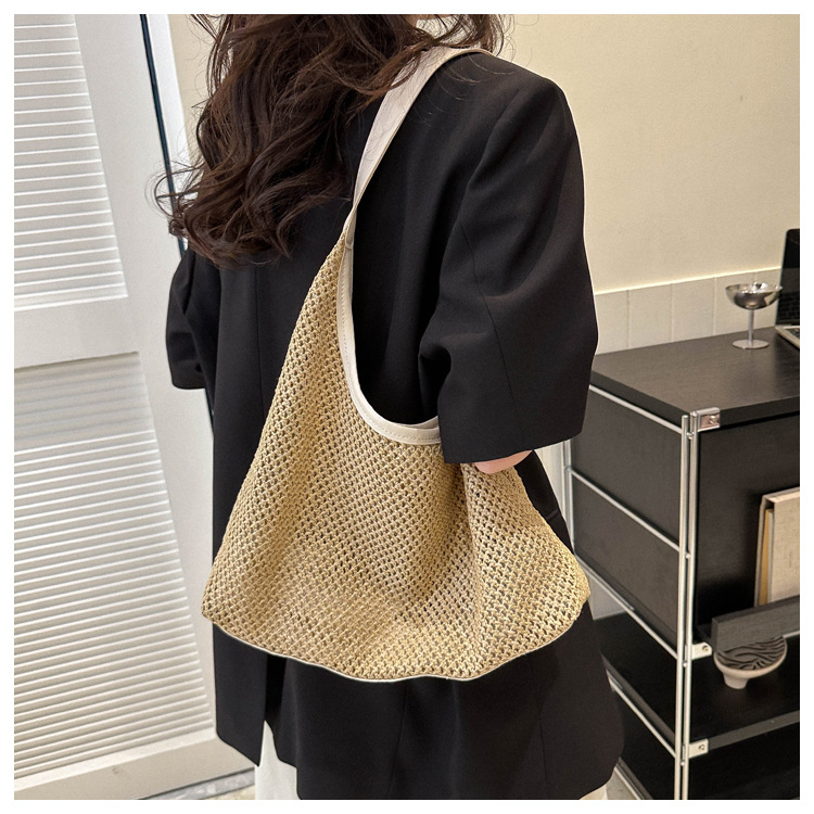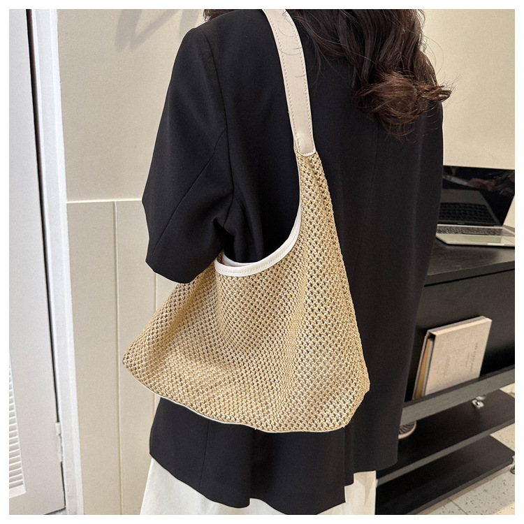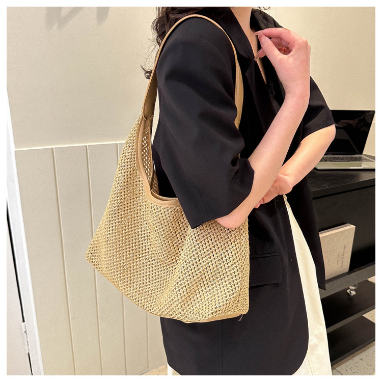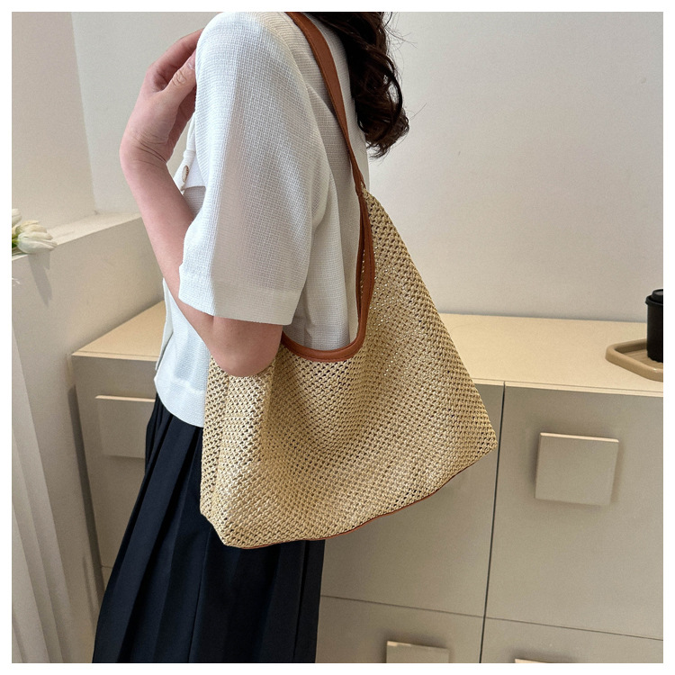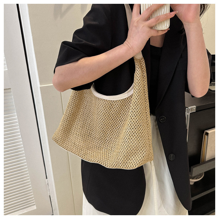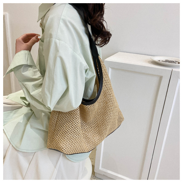Bolso tejido de moda femenino 2023 nuevo bolso retro de moda bolso de paja bolso de hombro de gran capacidad de todo fósforo