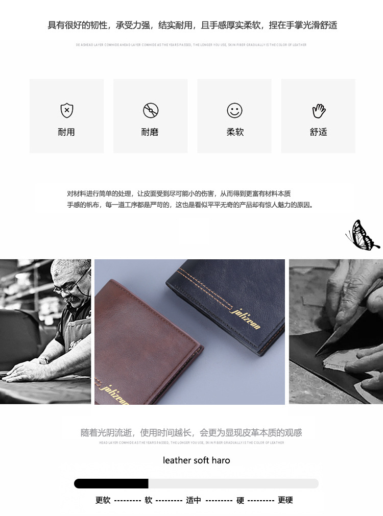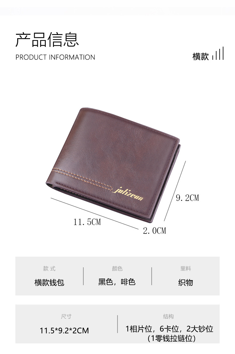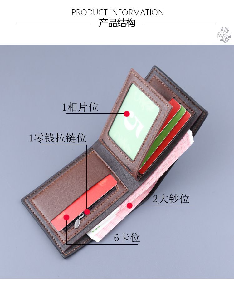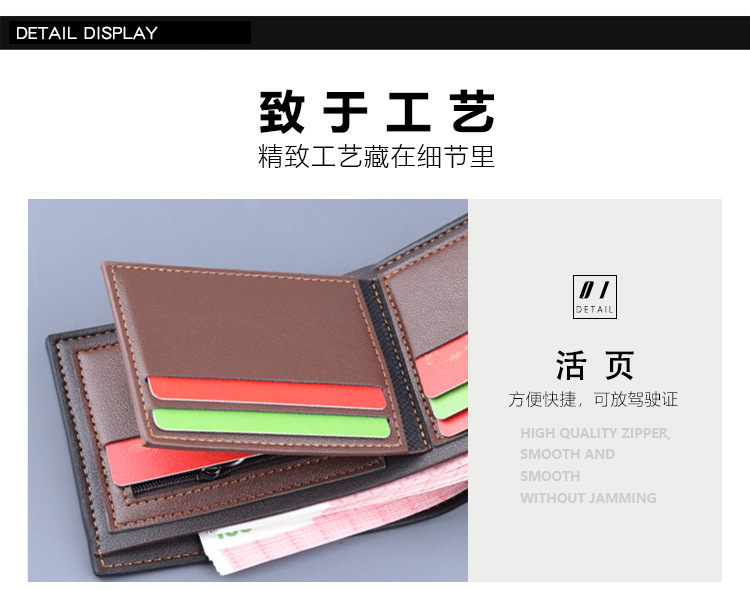 Nueva billetera corta titular de la tarjeta de los hombres cartera integrada de los hombres cartera corta de negocios cartera de los hombres con cremallera fábrica al por mayor