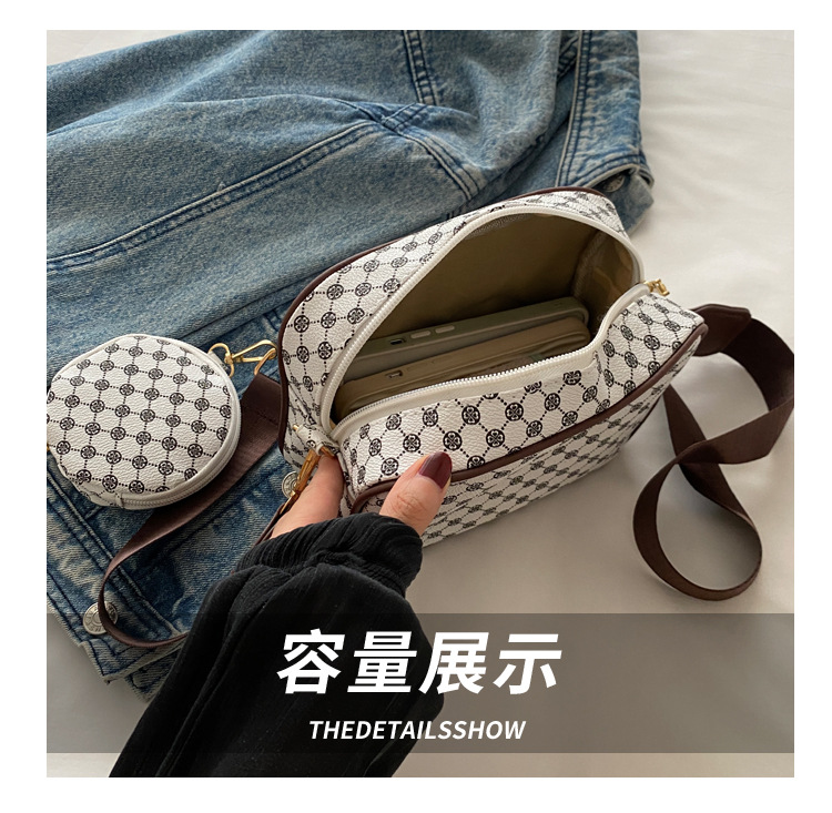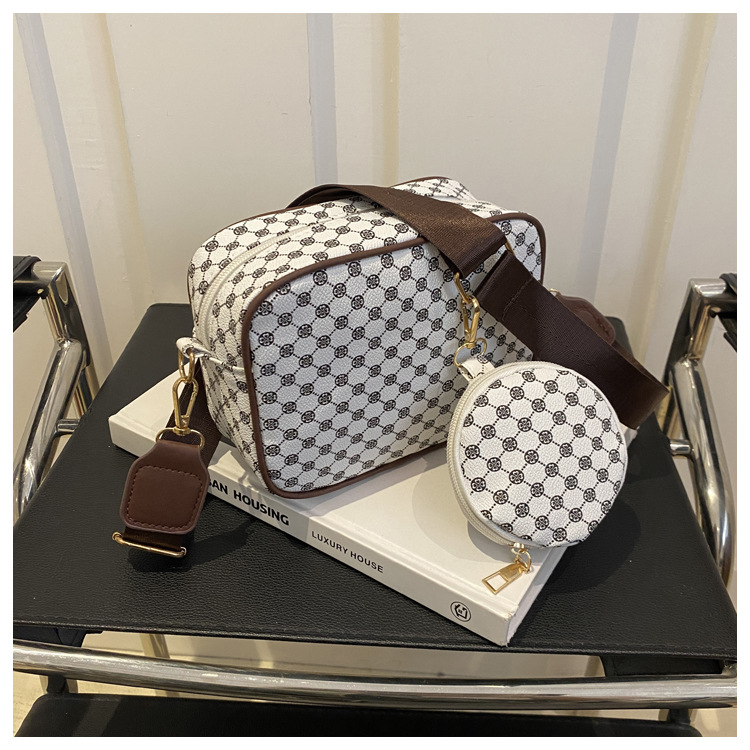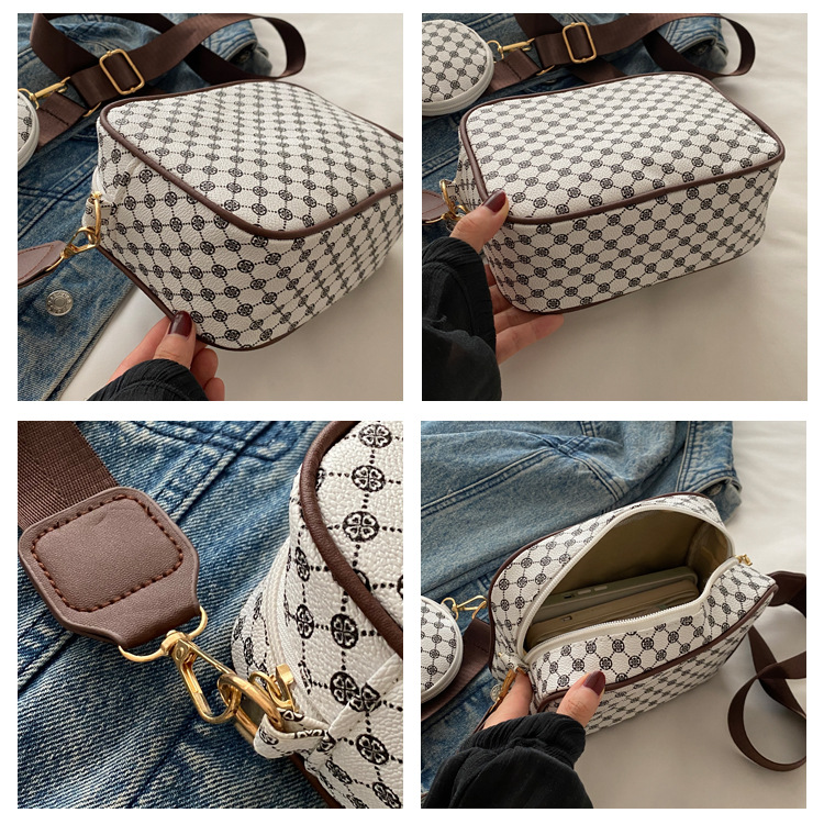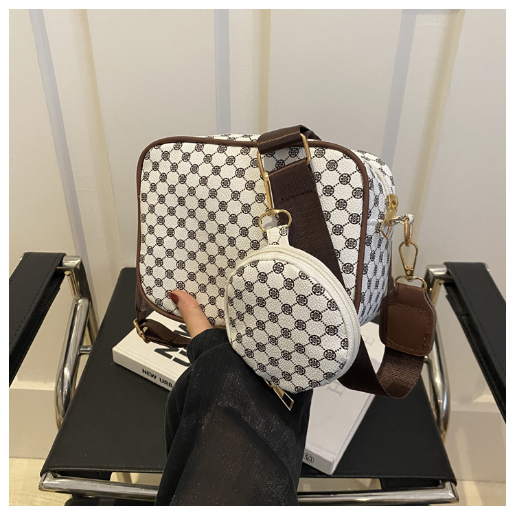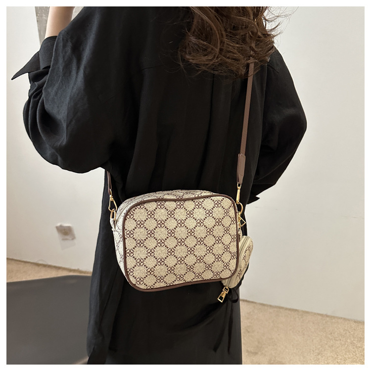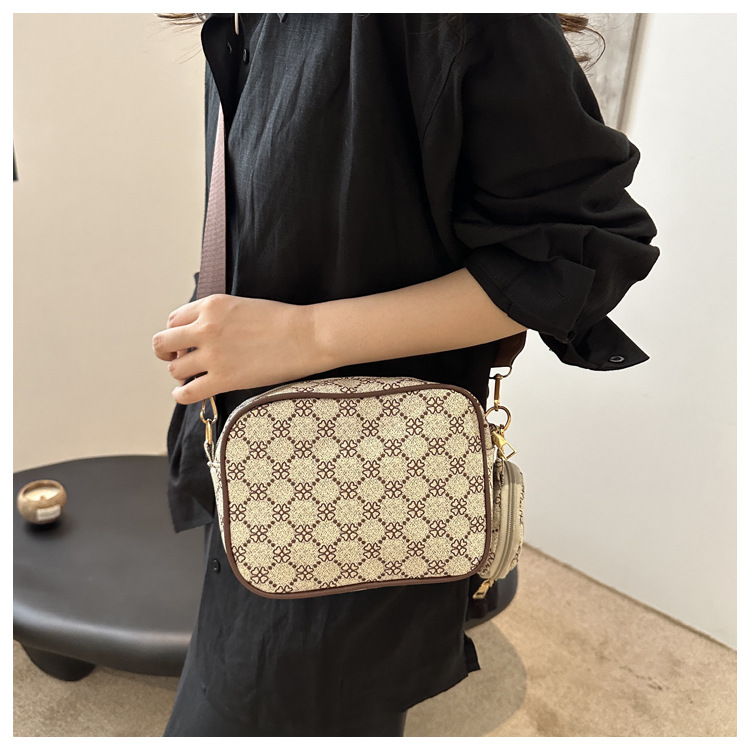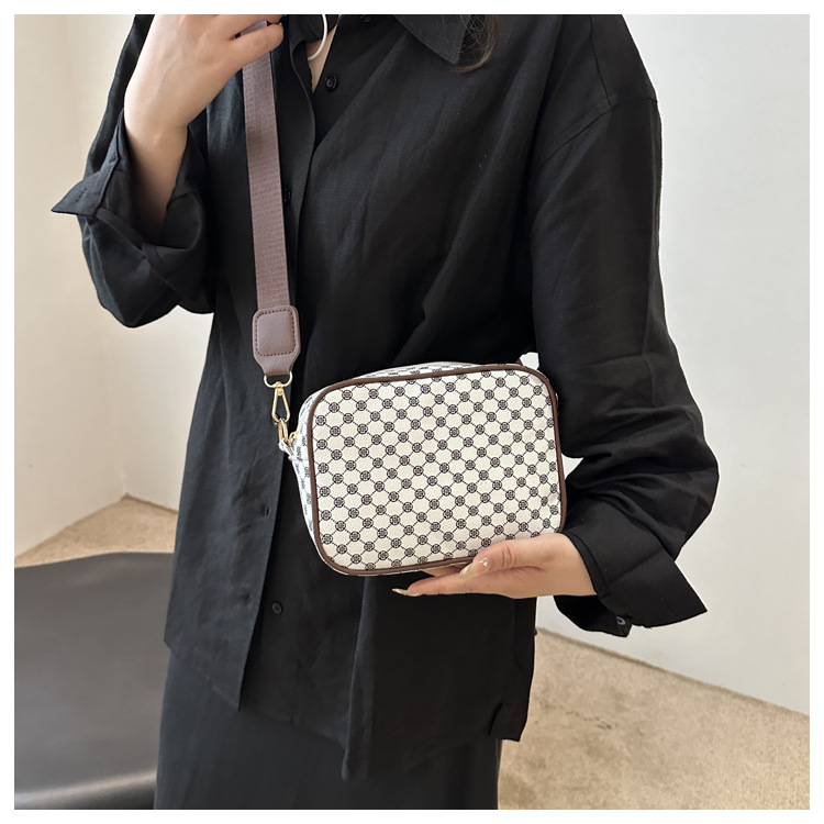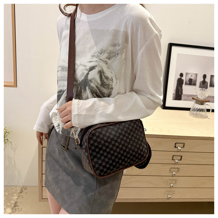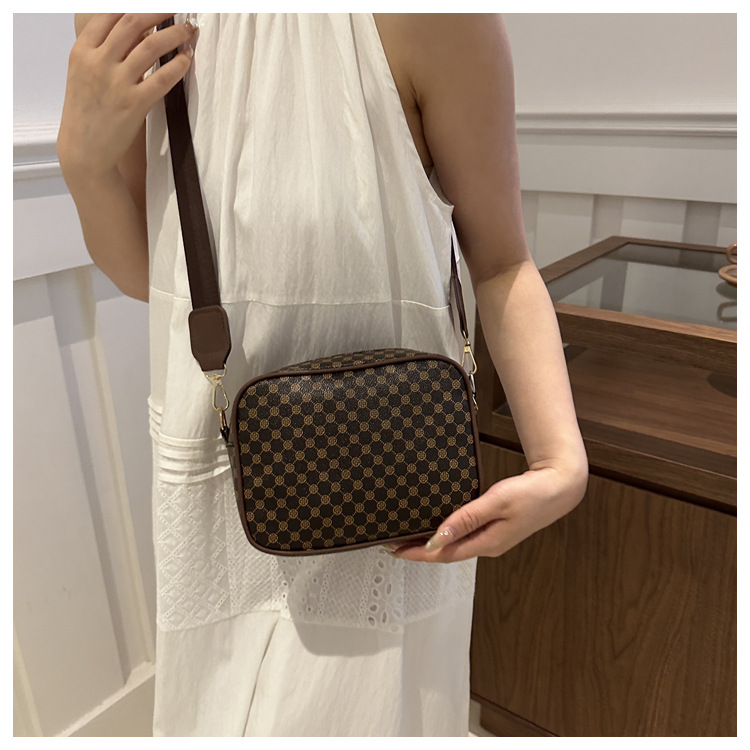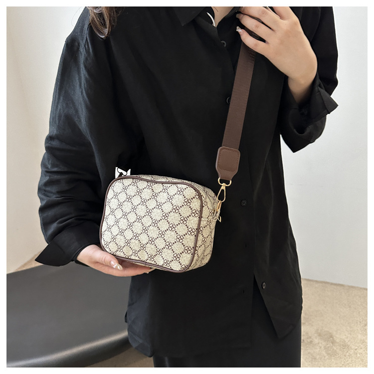 2024 nueva moda simple retro bolso impreso de mujer extranjero ancho cinturón de hombro bolso de hombro casual bolso de mochila