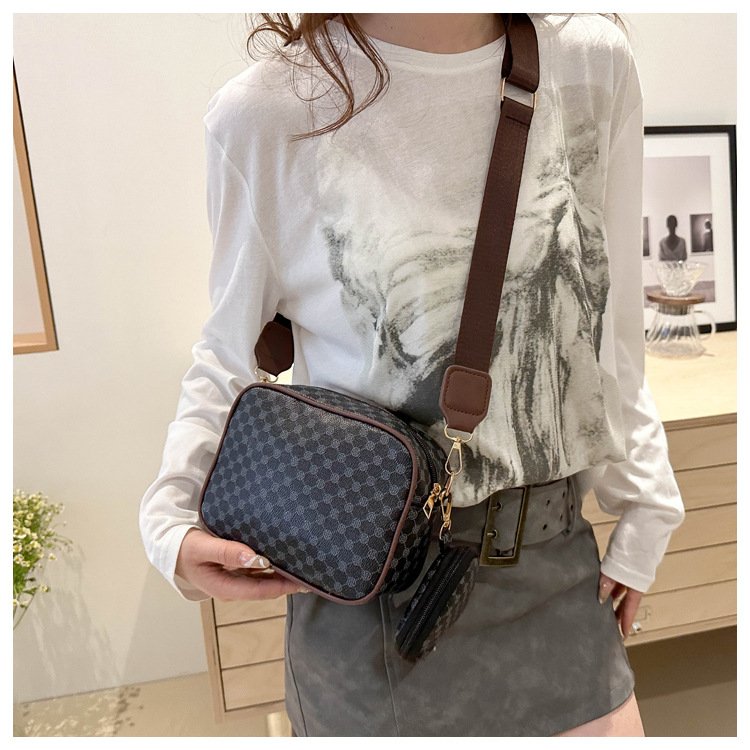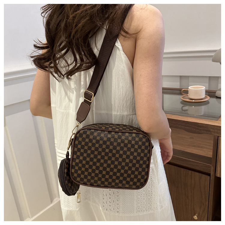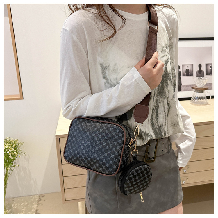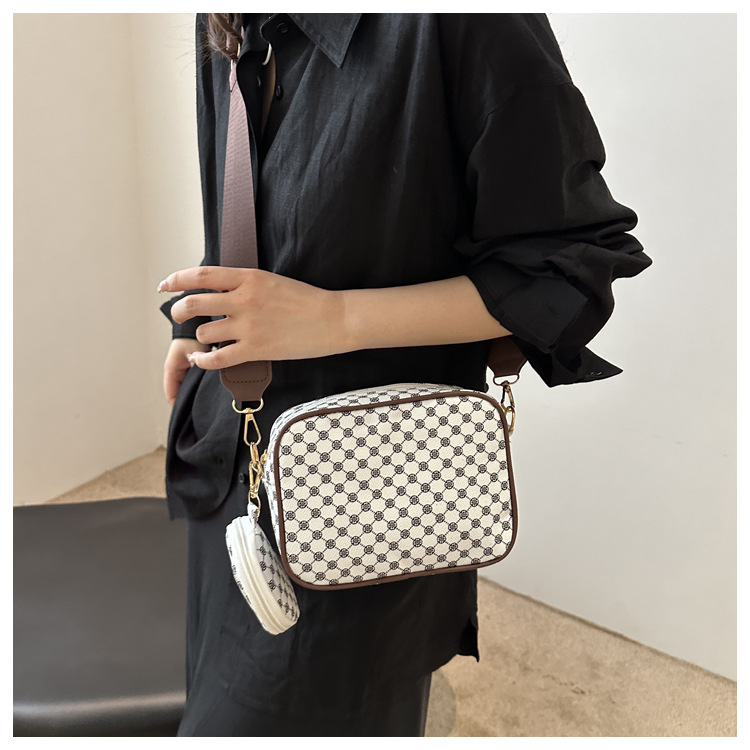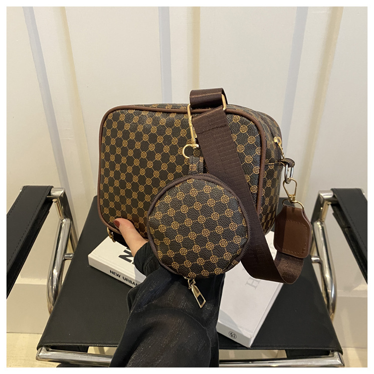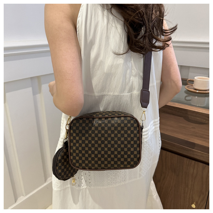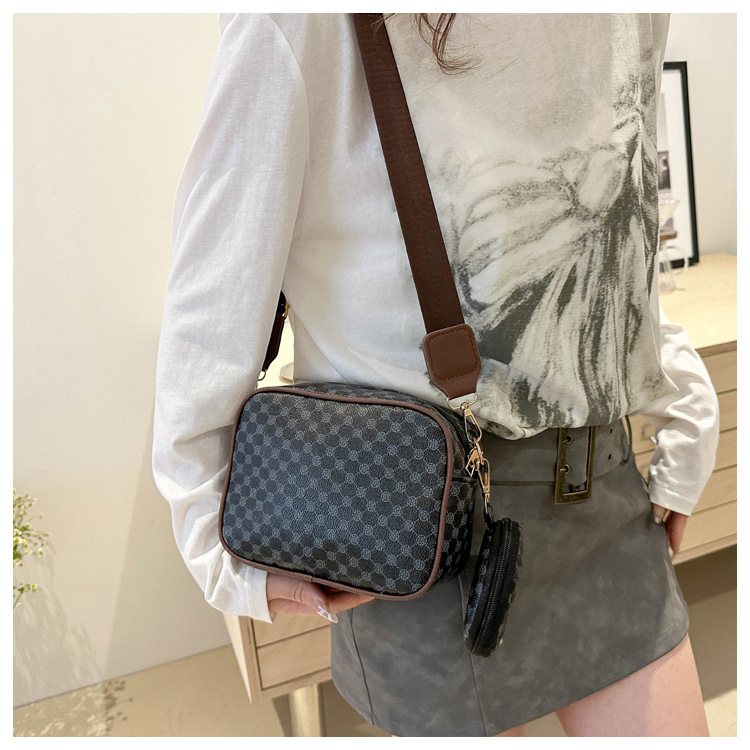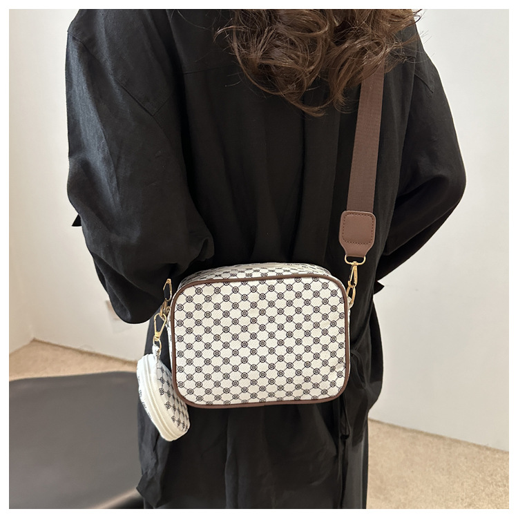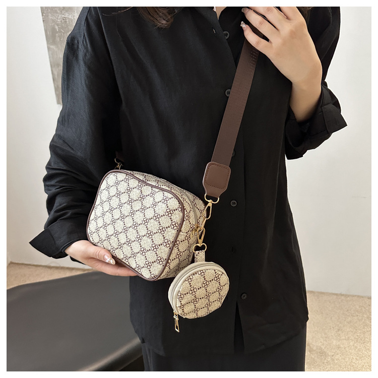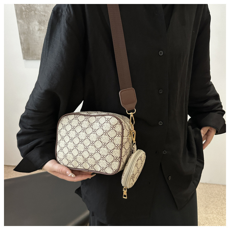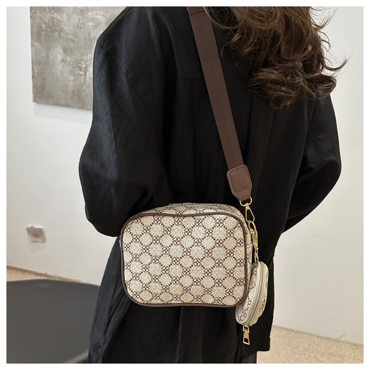 2024 nueva moda simple retro bolso impreso de mujer extranjero ancho cinturón de hombro bolso de hombro casual bolso de mochila