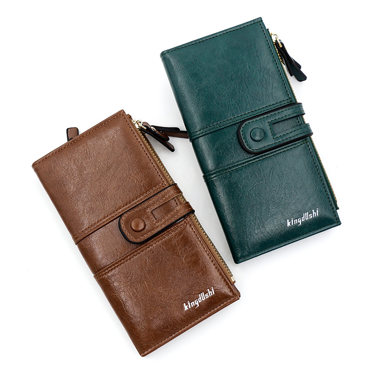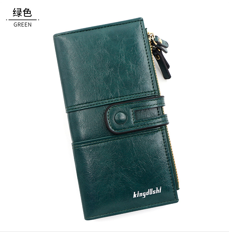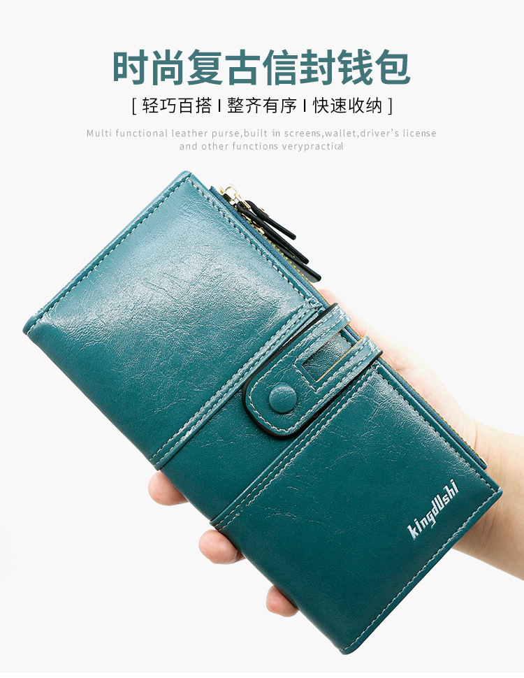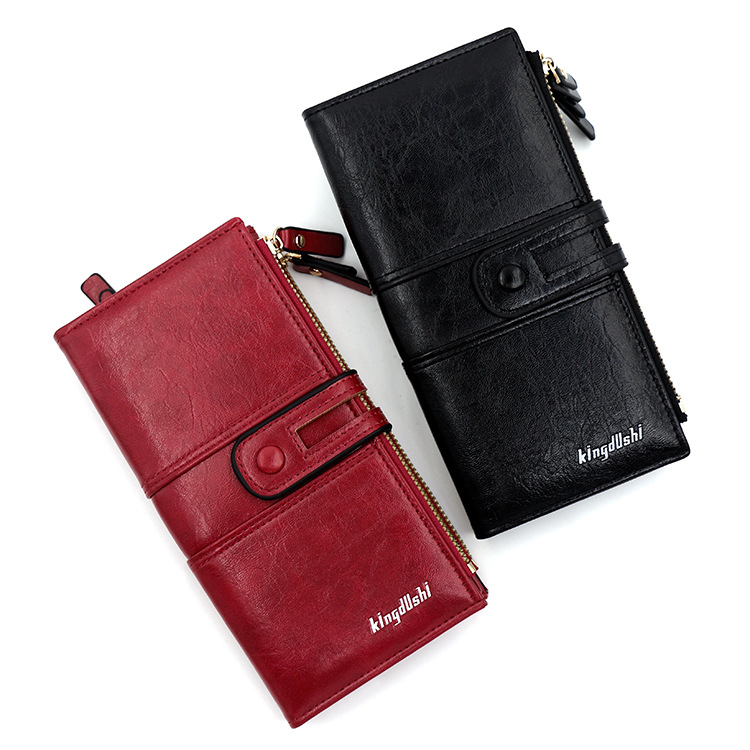Cartera retro europea y americana de las mujeres de gran capacidad larga hebilla D multi-tarjeta de comercio exterior multi-funcional tríptico embrague al por mayor