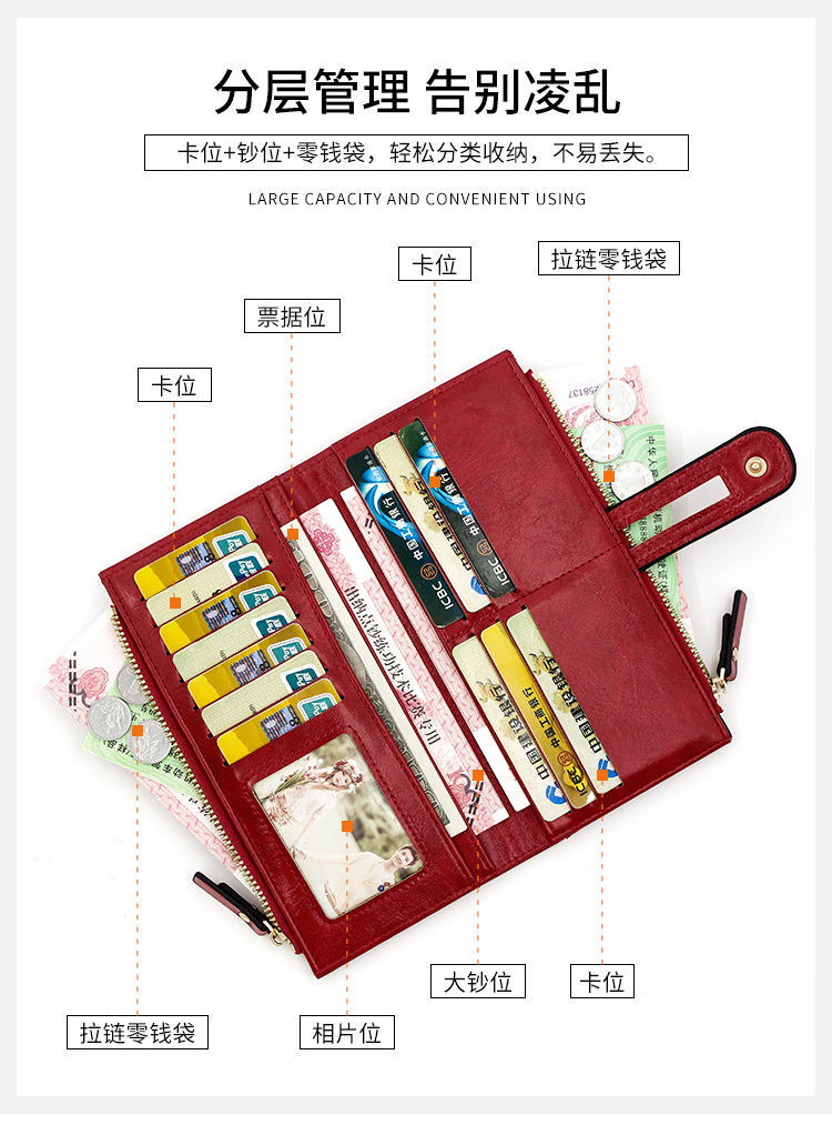 Nueva billetera larga de las mujeres de moda simple estilo coreano de gran capacidad hebilla cremallera bolsa de embrague multi-Tarjeta billetera