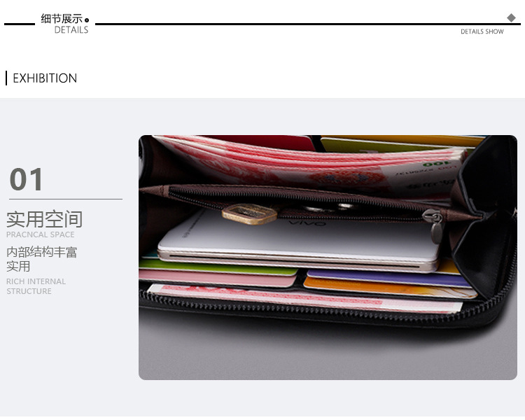 Embrague de los hombres nuevos negocios cremallera bolso de gran capacidad embrague de la manera larga cartera bolso del teléfono simple