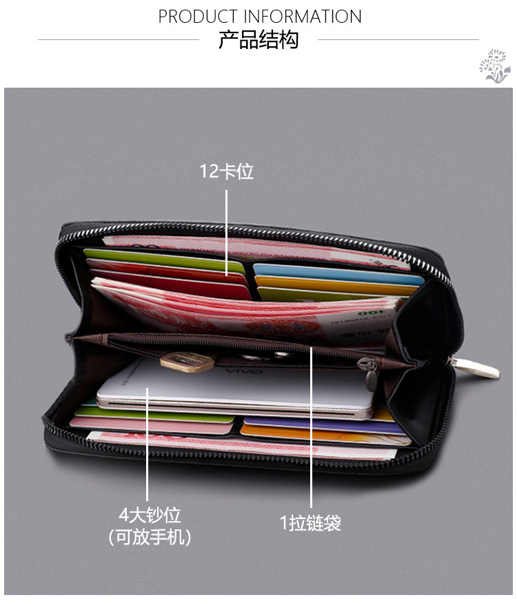 Larga cremallera de los hombres Cartera de gran capacidad cartera embrague teléfono móvil bolsa casual tarjeta de visita posición dinero