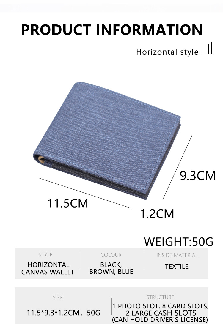 Cartera corta de lona para hombre Venta caliente de comercio exterior Nuevo estilo Wallet man Cartera para hombre 9 posiciones para tarjeta Cartera para hombre