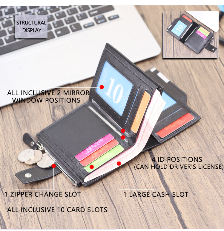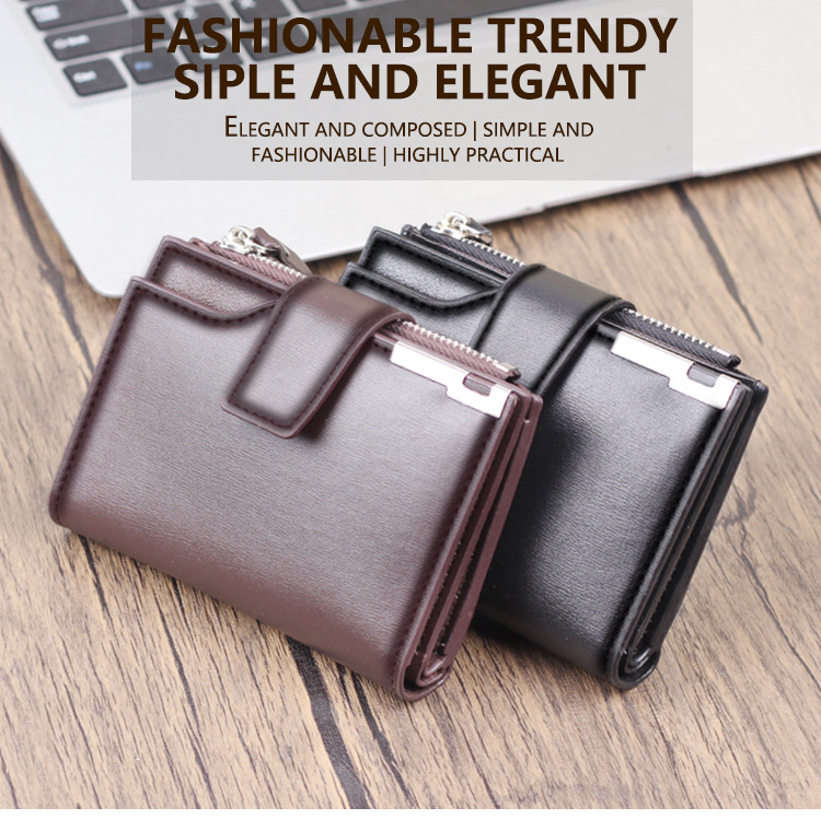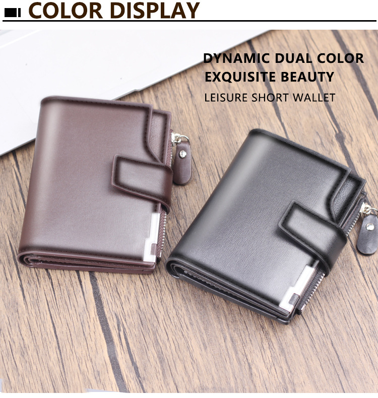 Suministro transfronterizo 2023 hombres Nueva cremallera billetera corta multi-tarjeta de moda vertical mini monedero a presión