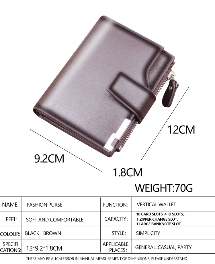Cartera vertical para hombre Cartera corta con cremallera Monedero multifuncional Cartera para hombre Bolso con botón para hombre Wallet