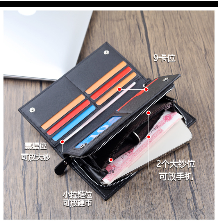 Cartera de los hombres al por mayor titular de la tarjeta integrada billetera larga de los hombres ultrafina cartera de los hombres delgada fábrica retro en stock