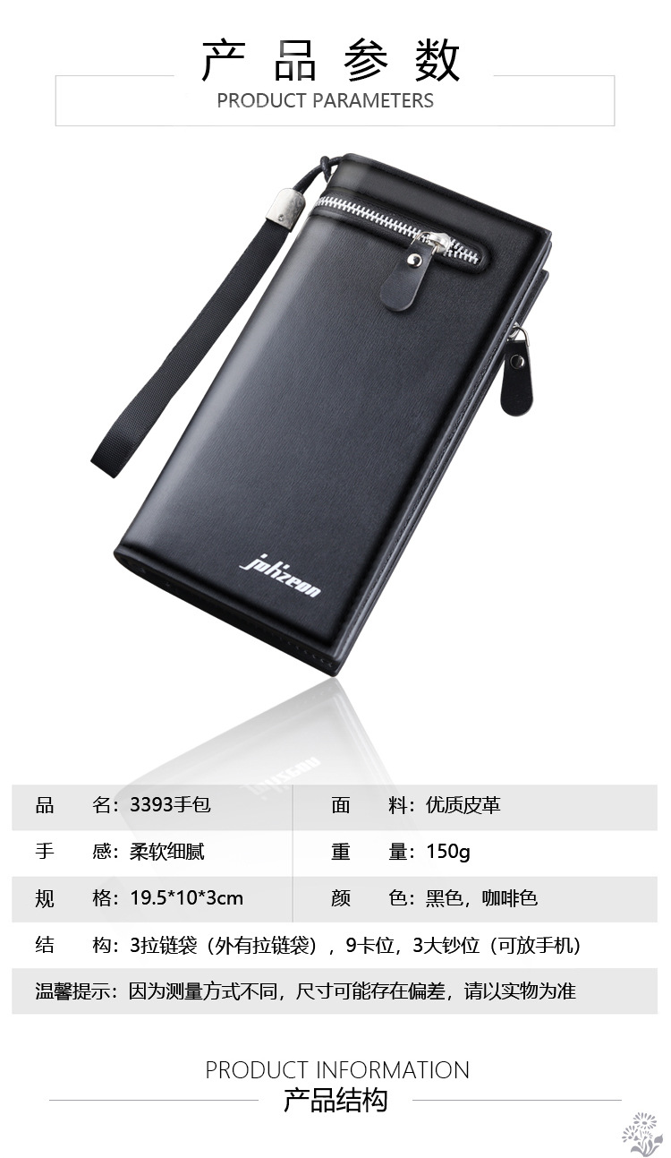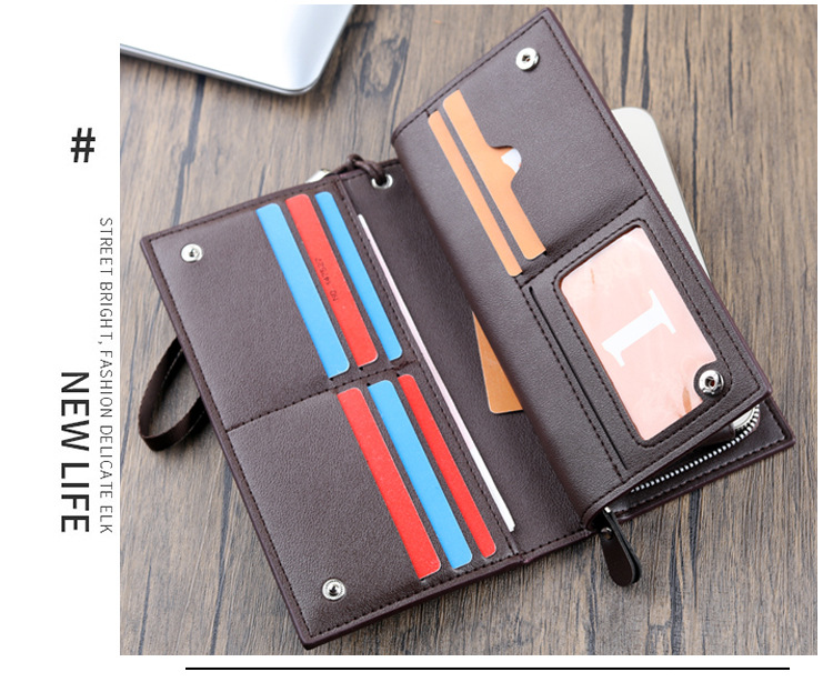 Nuevos hombres de la cremallera larga cartera los embrague gran capacidad bolso del teléfono móvil portátil pequeño simple