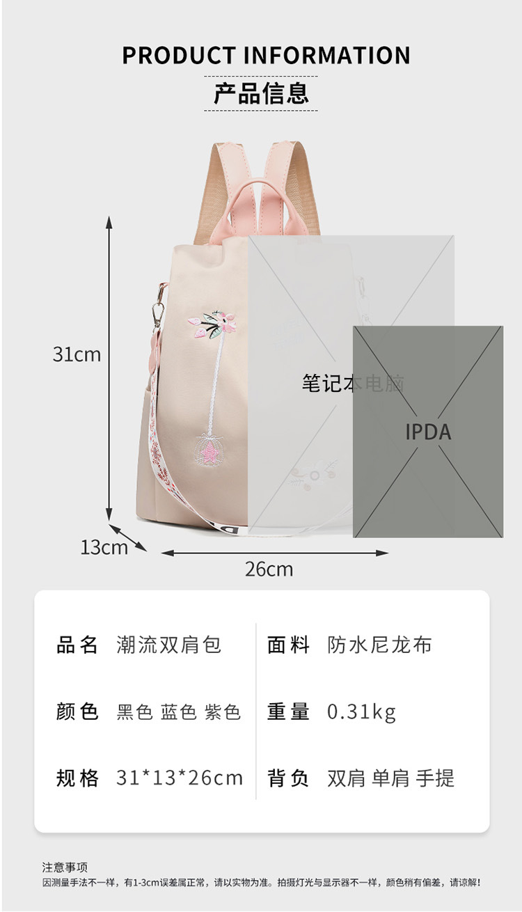 2020 nueva flor bordada mochila estilo nacional de literatura mujer mochila Oxford de gran capacidad bolsa de mujer en línea